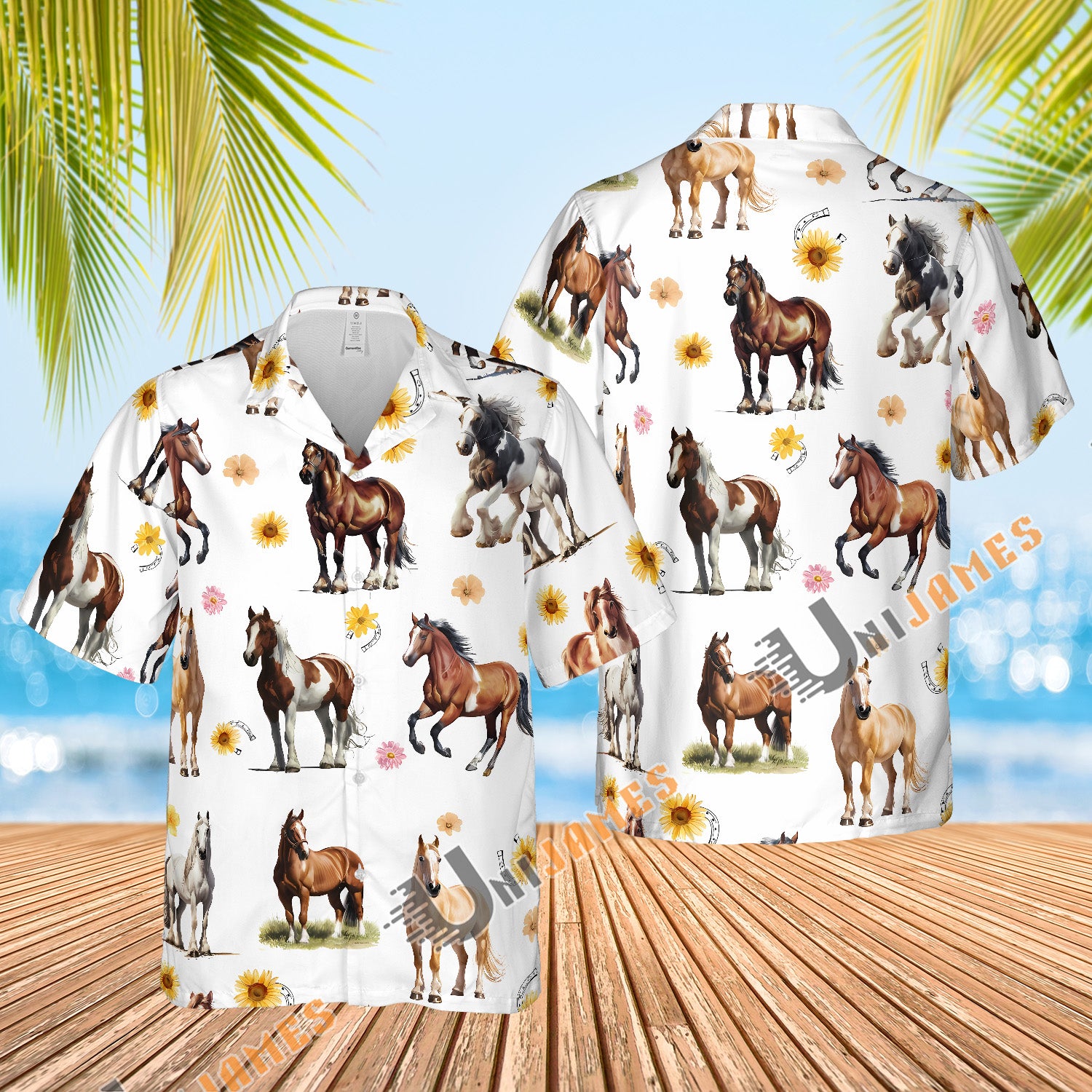 A Hawaiian shirt with horse racing prints