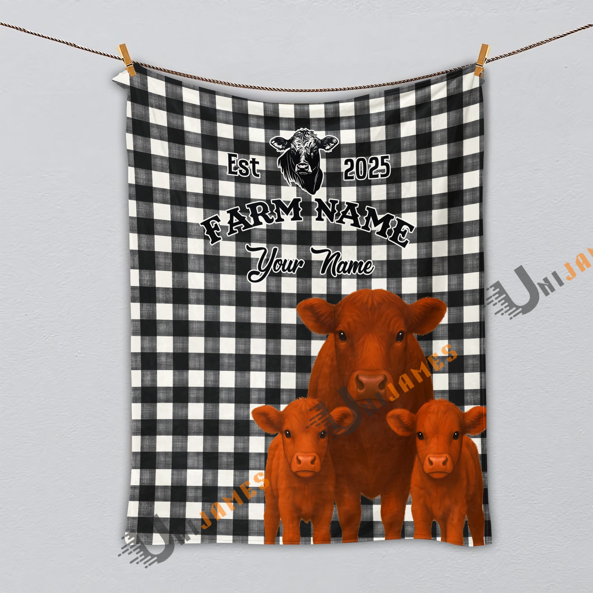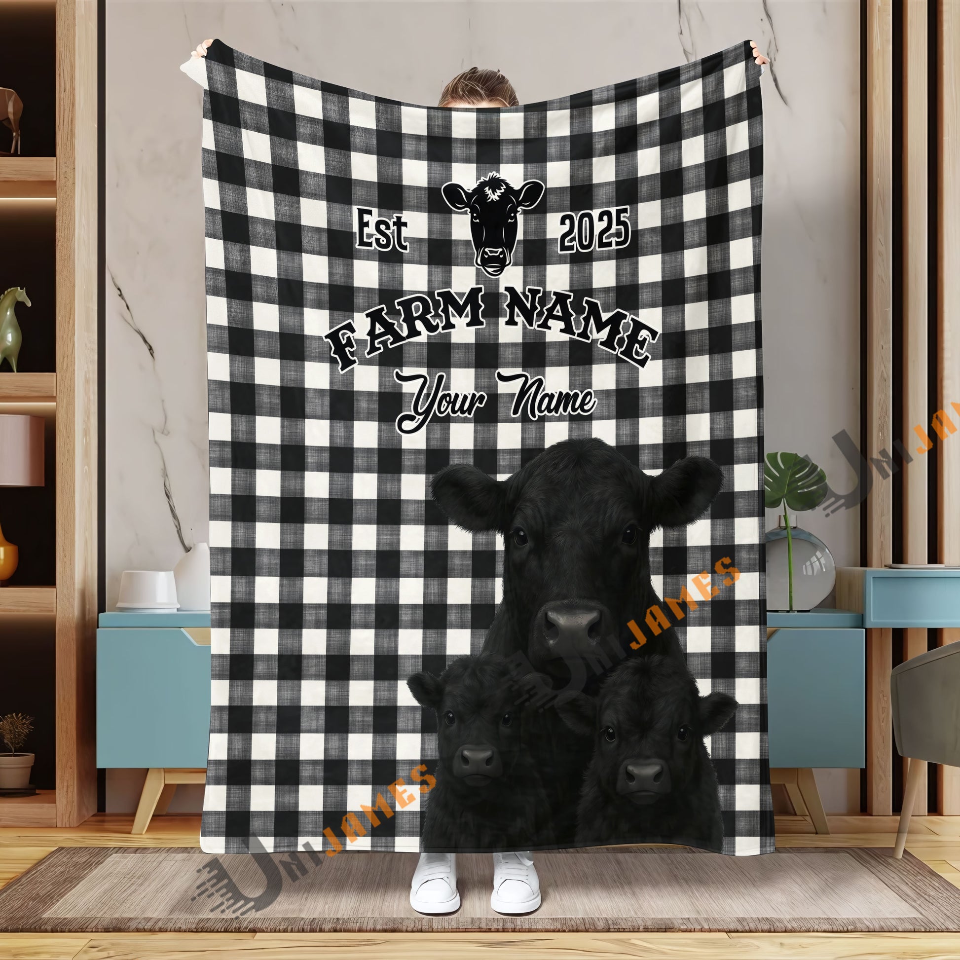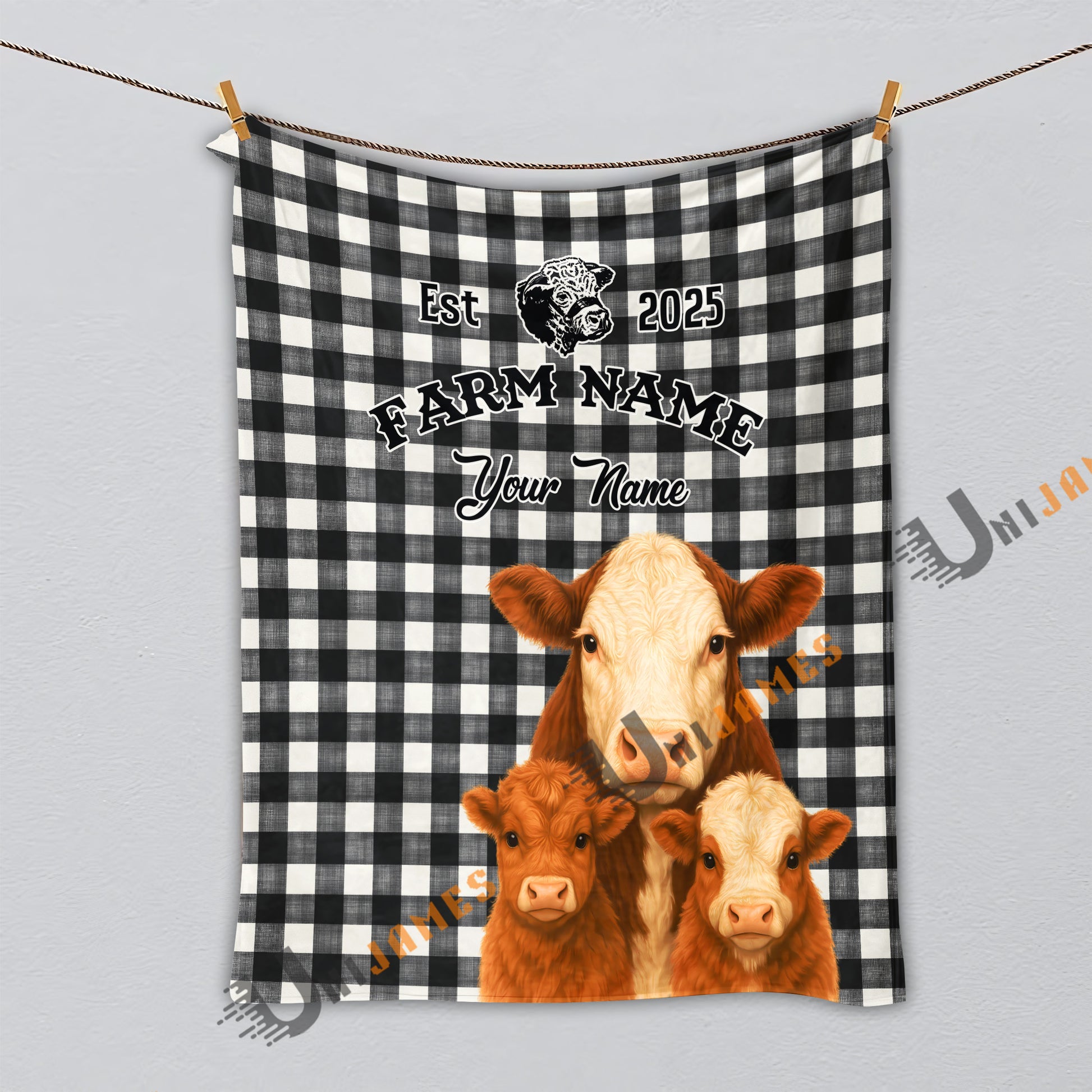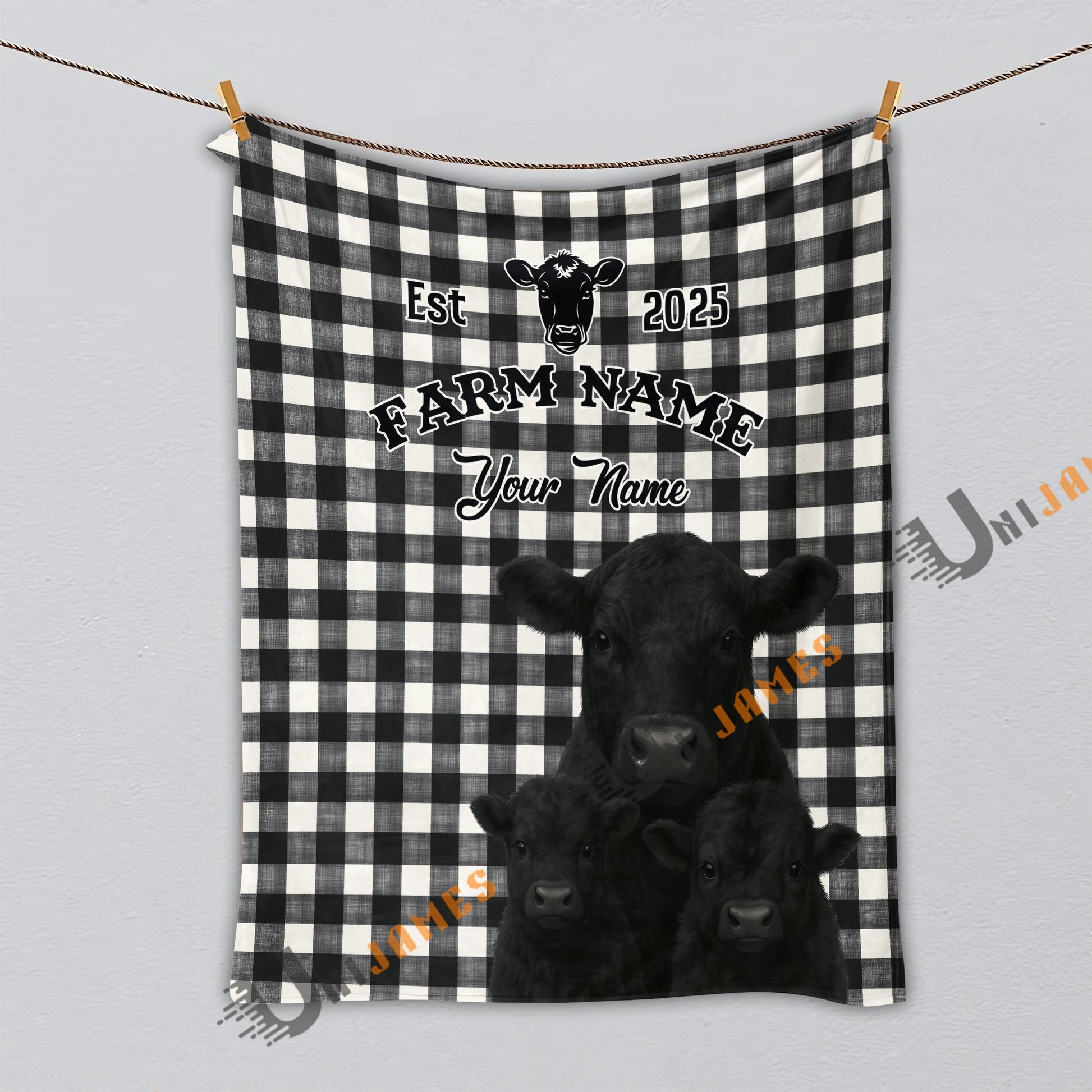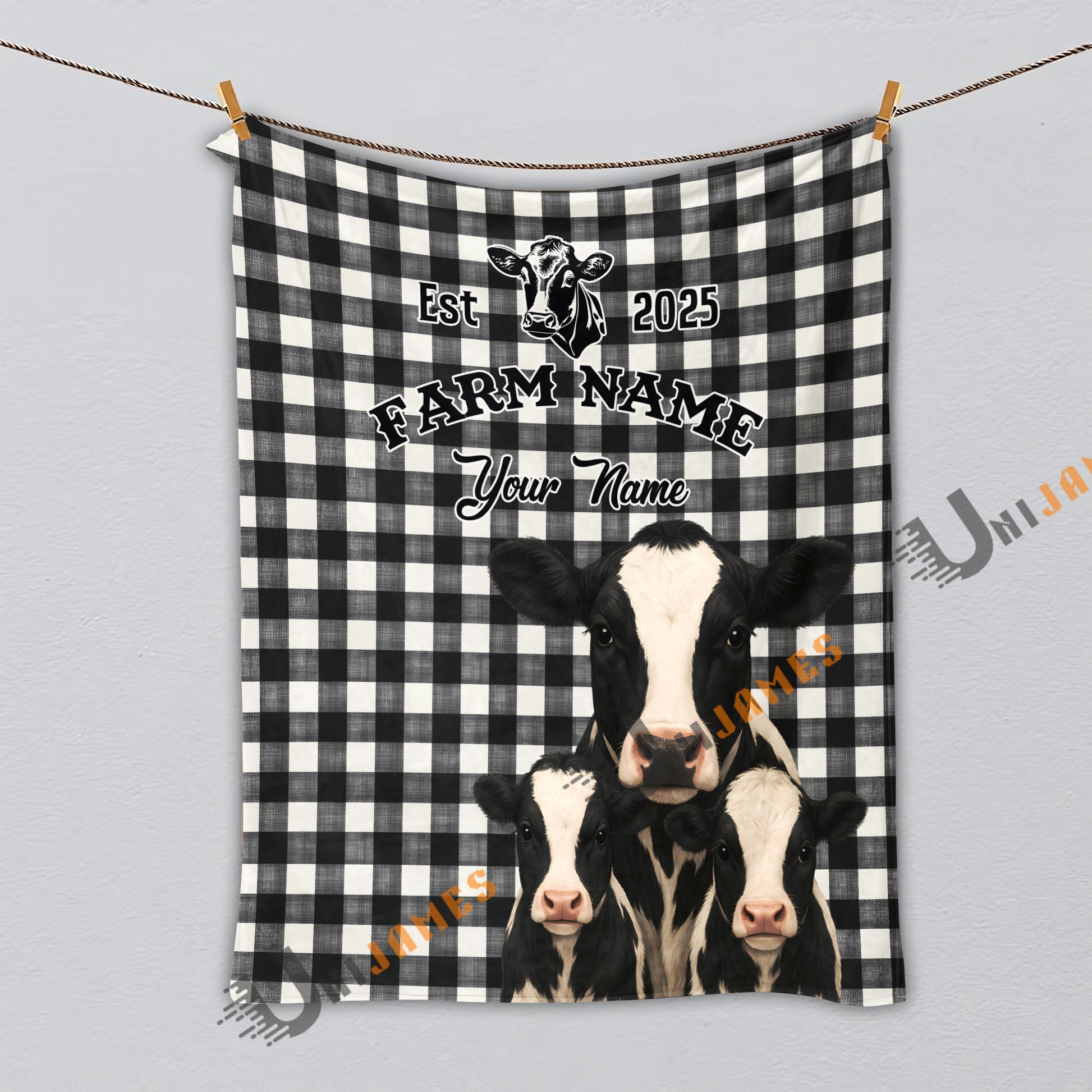 UniJames Black And White Plaid Custom Name Farm Name Blanket