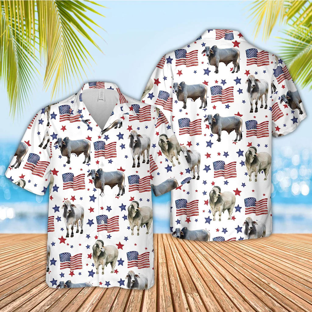 Unique Brahman American Flag Pattern Hawaiian Shirt