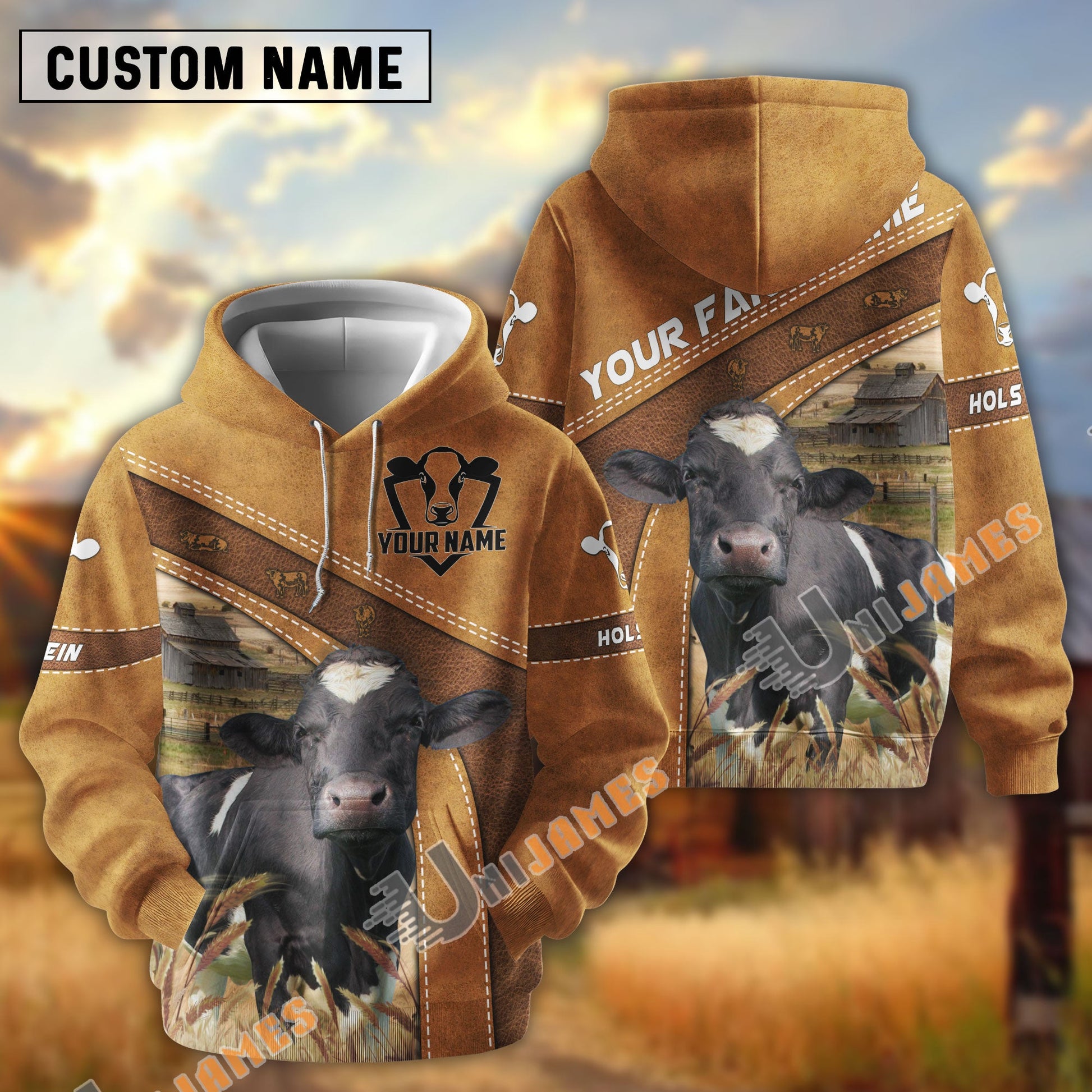 Uni Personalized Name Farm Holstein Cattle Hoodie