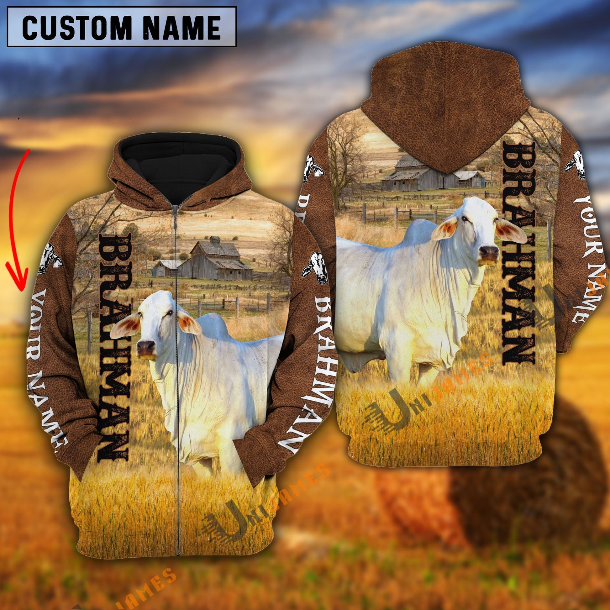 Uni Personalized Name Farm Brahman Brown Hoodie