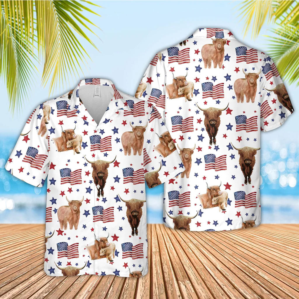 Unique Highland American Flag Pattern Hawaiian Shirt