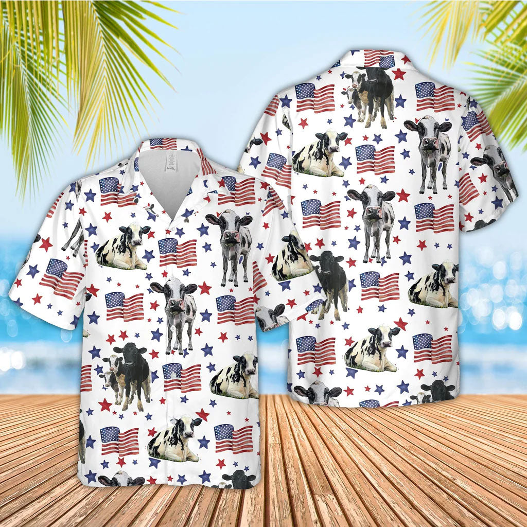 Unique Holstein American Flag Pattern Hawaiian Shirt