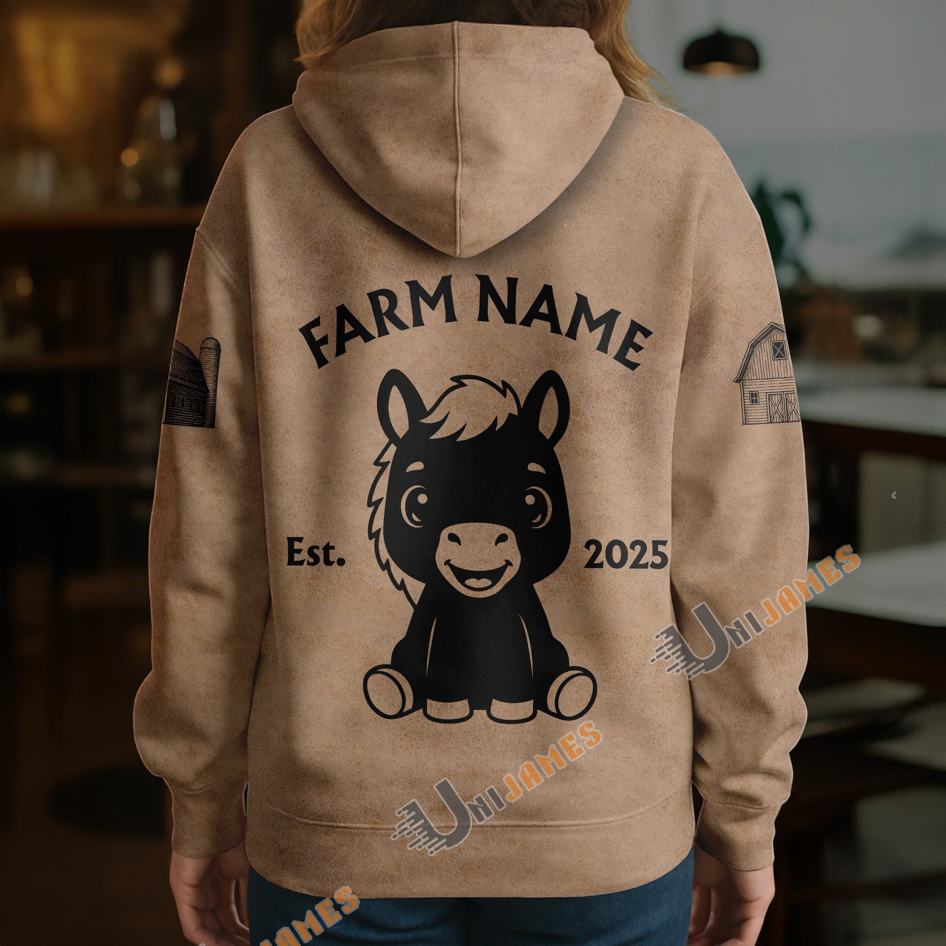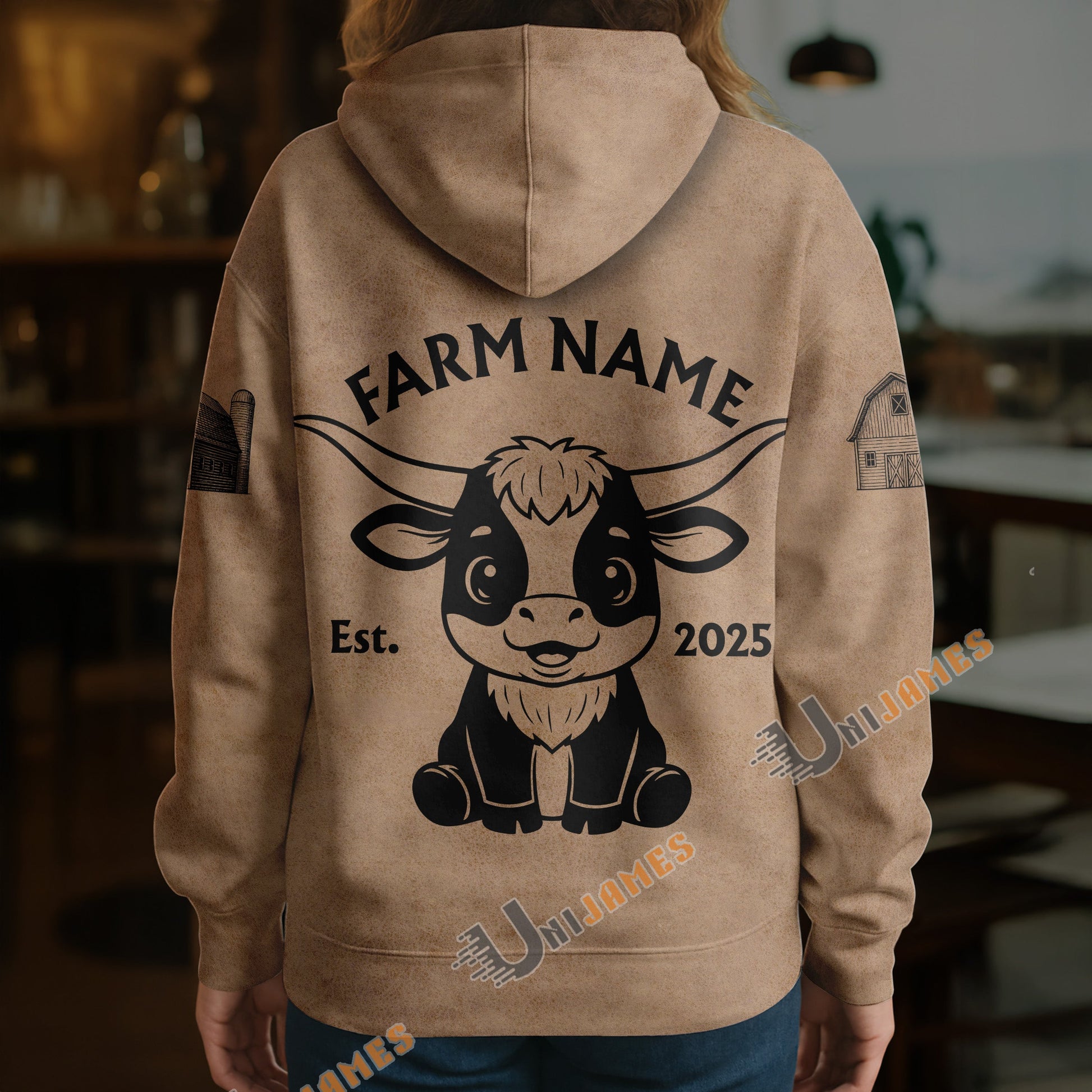 Uni Personalized Name & Farm Name Adorable Farm Calf Hoodie (10 Cattle Breeds)