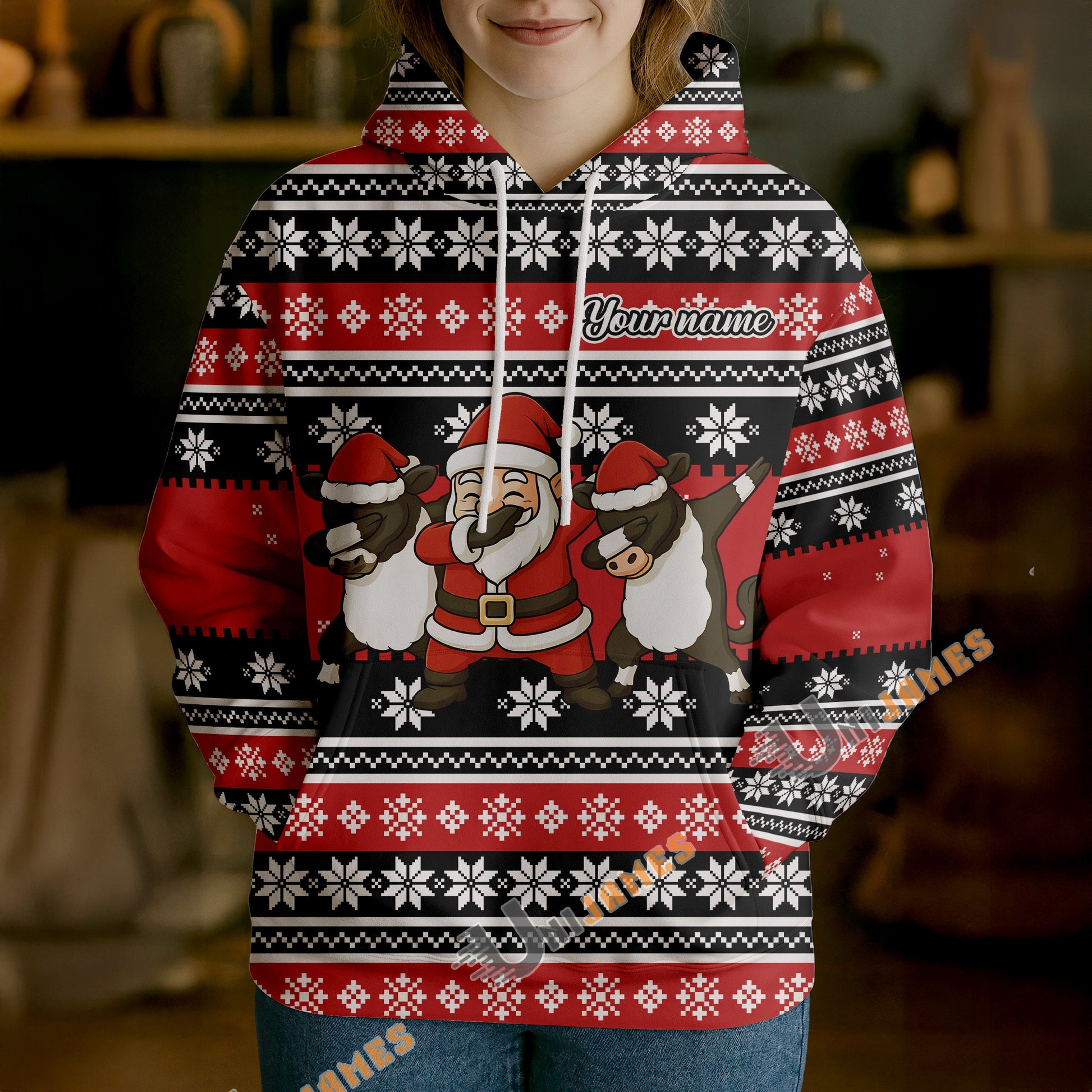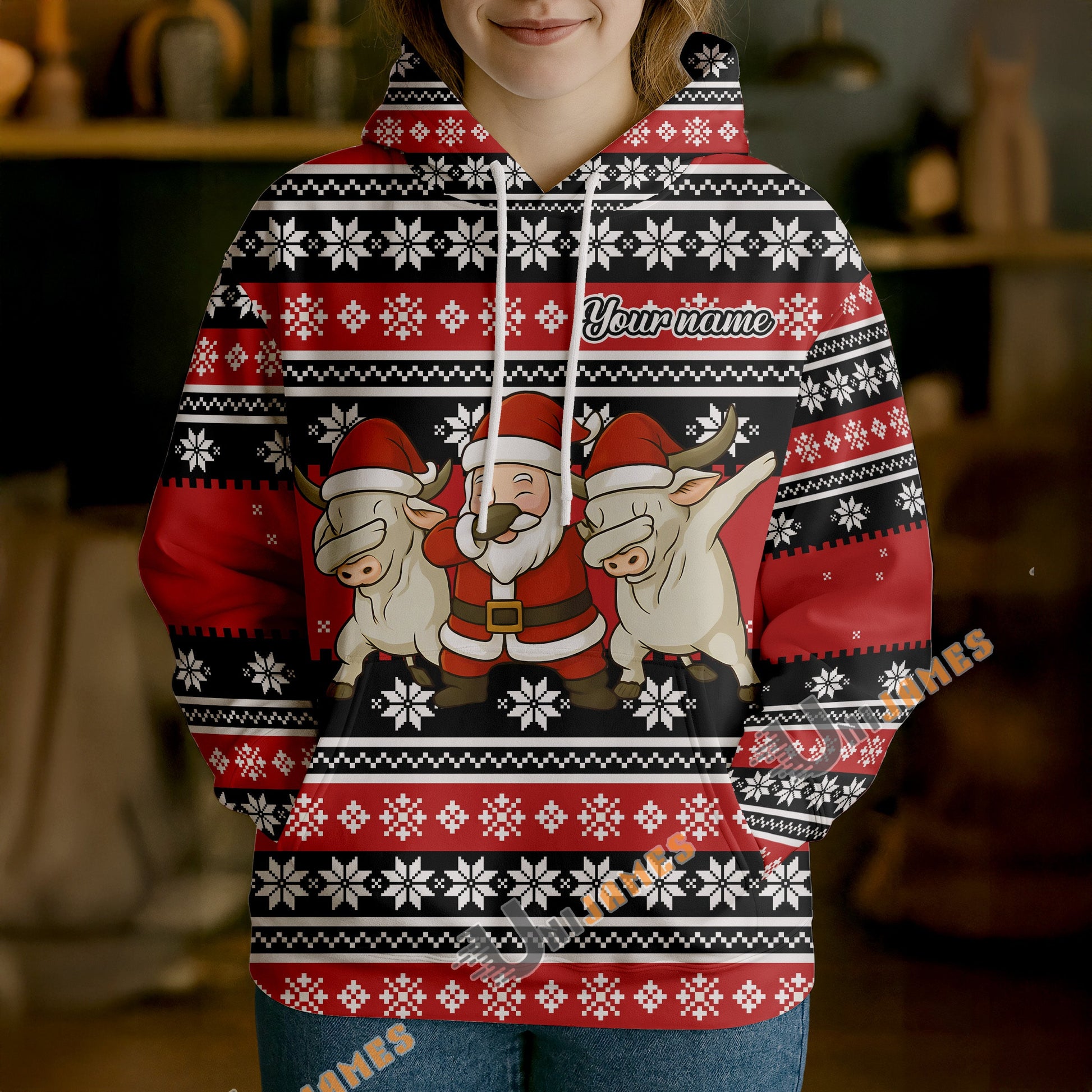 Uni Personalized Funny Farm Santa Christmas Sweater Hoodie (8 Cattle Breeds)