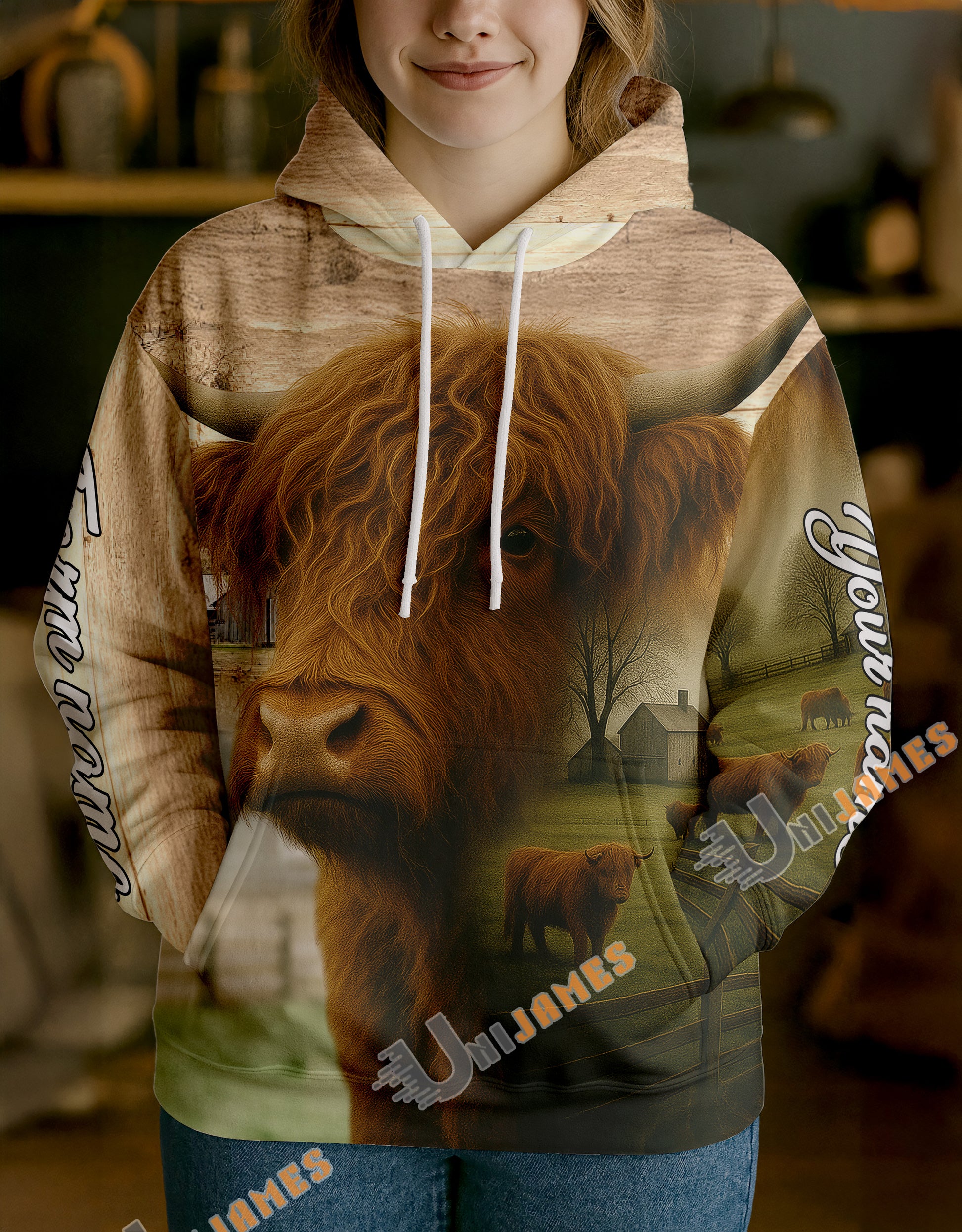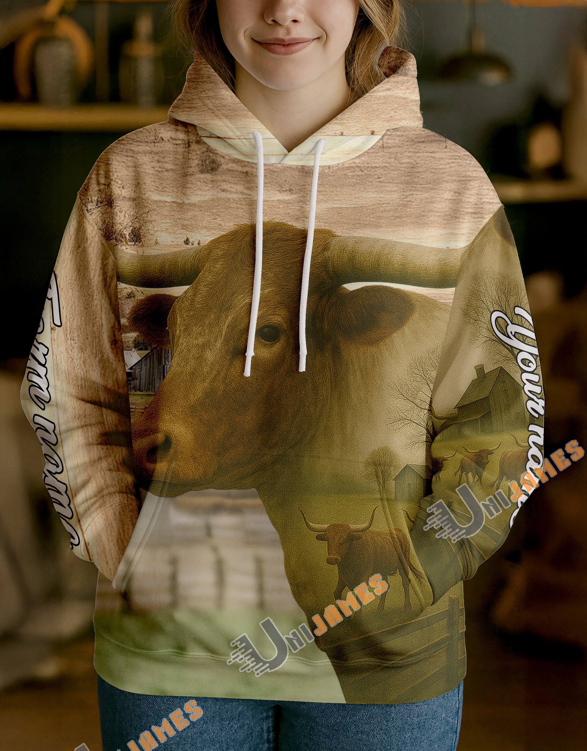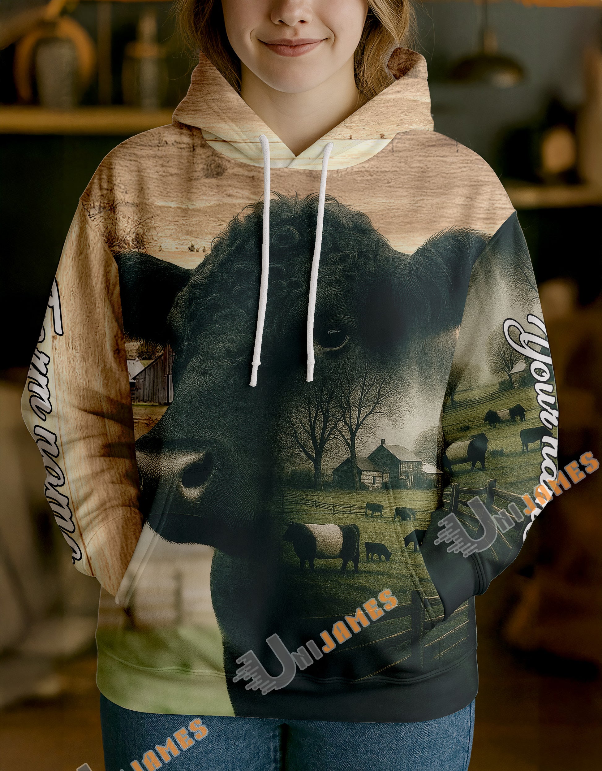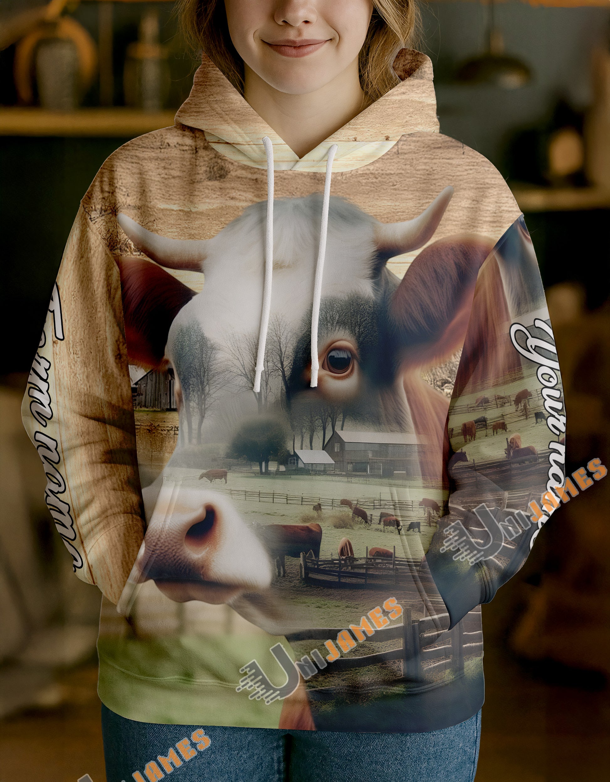 Uni Personalized Name & Farm Name Peaceful Countryside Cow Hoodie