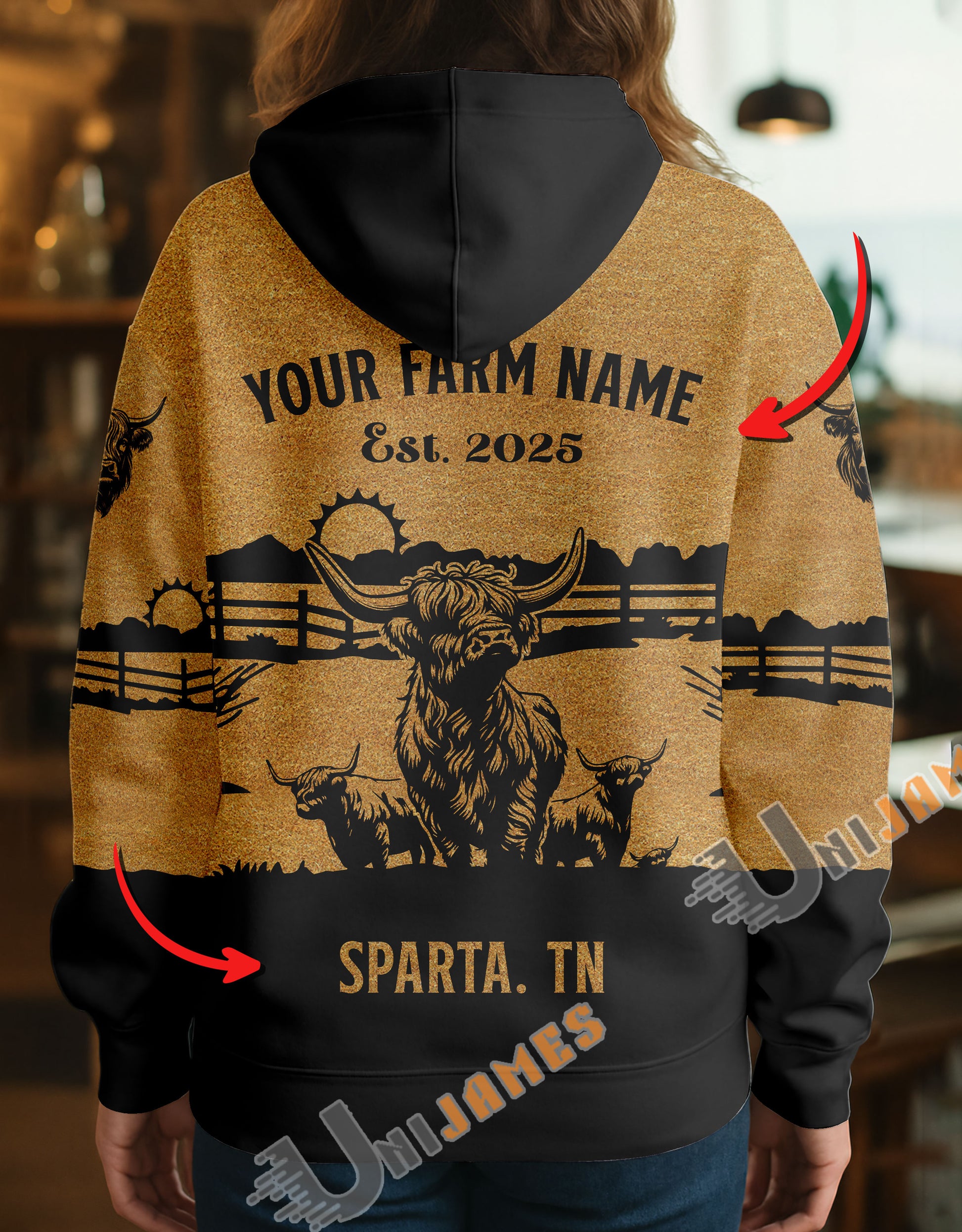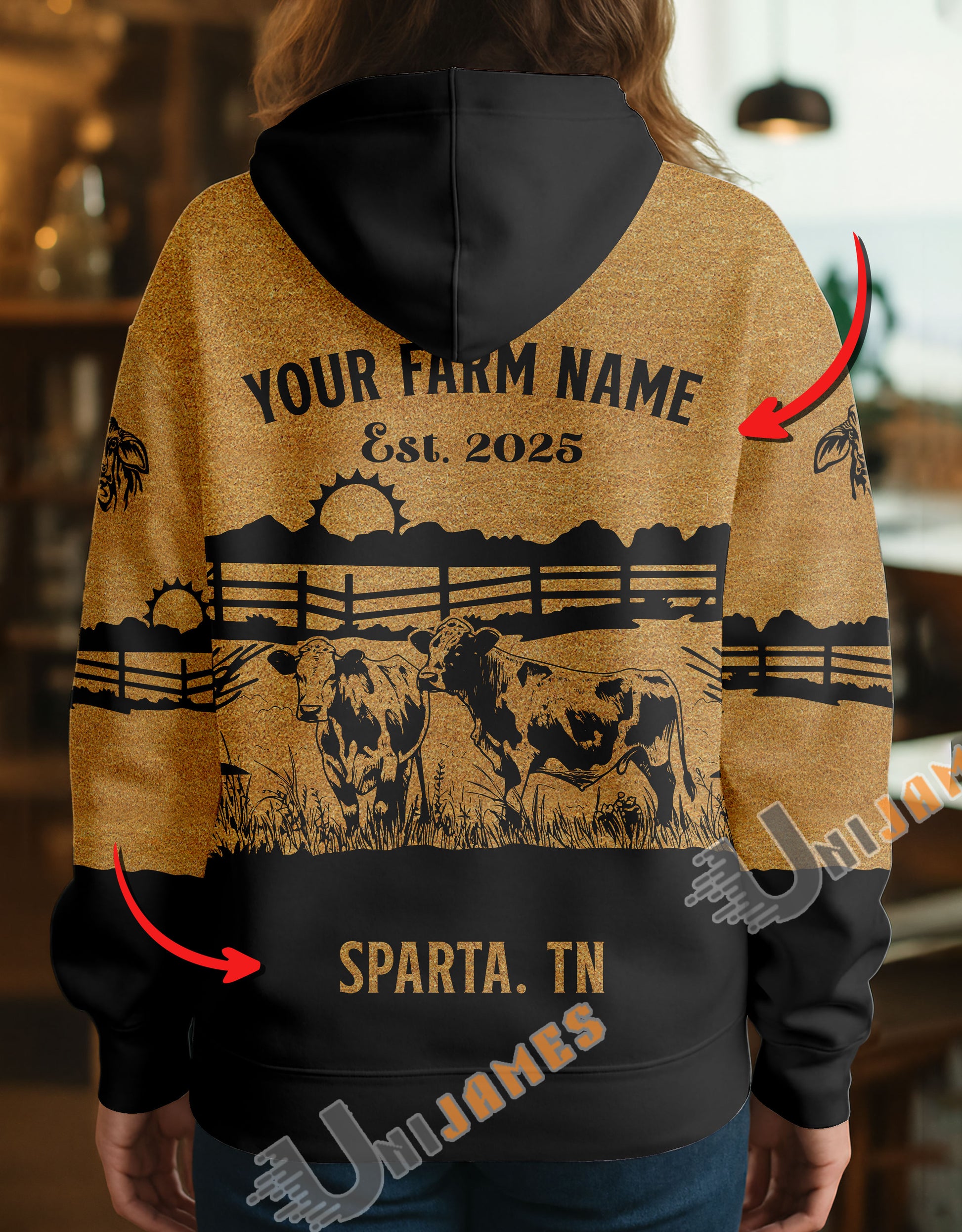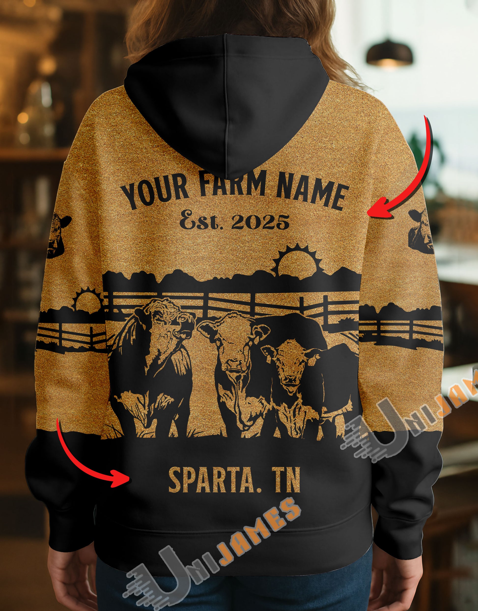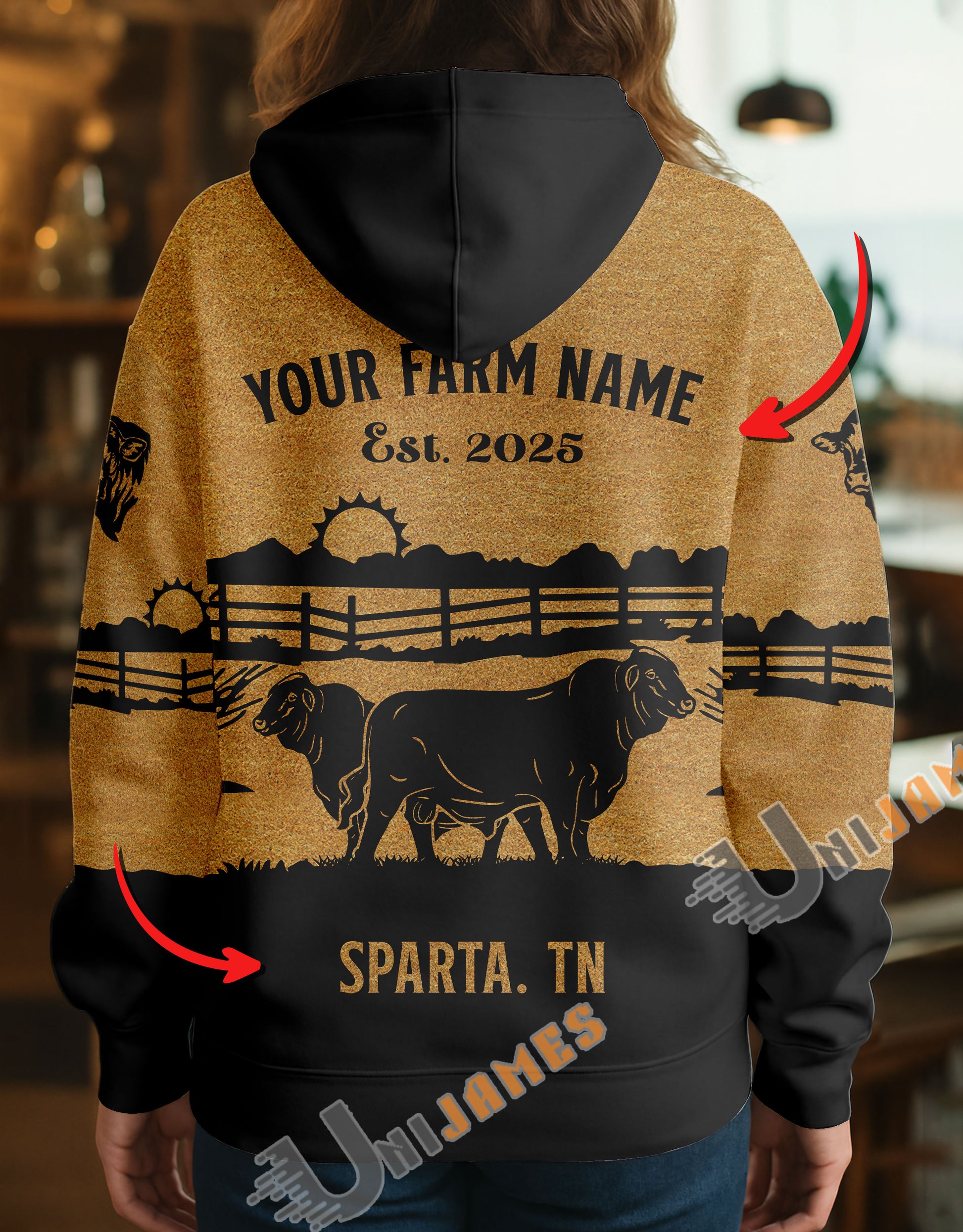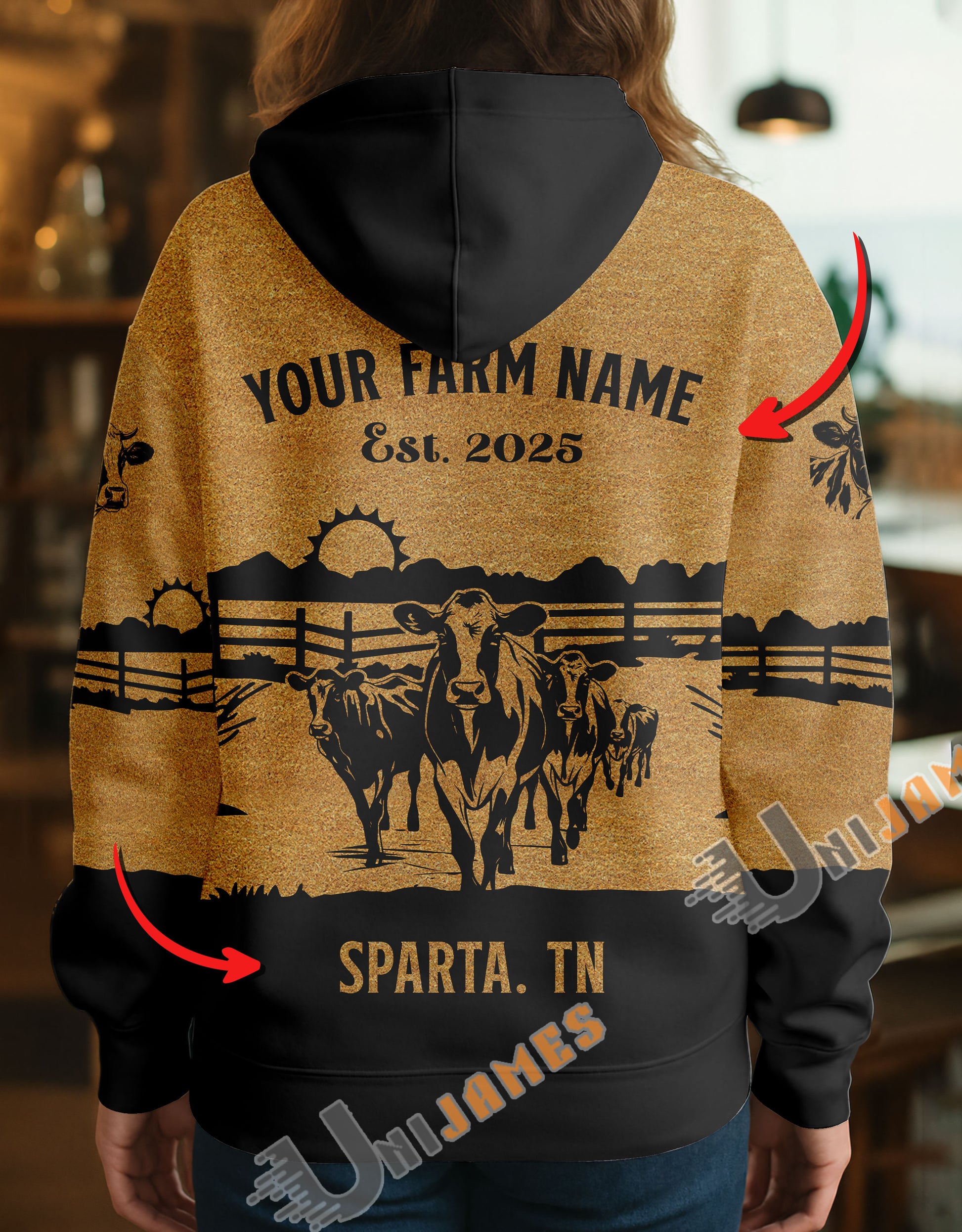 Uni Personalized Coir Pattern Name & Farm Name Cattle Hoodie
