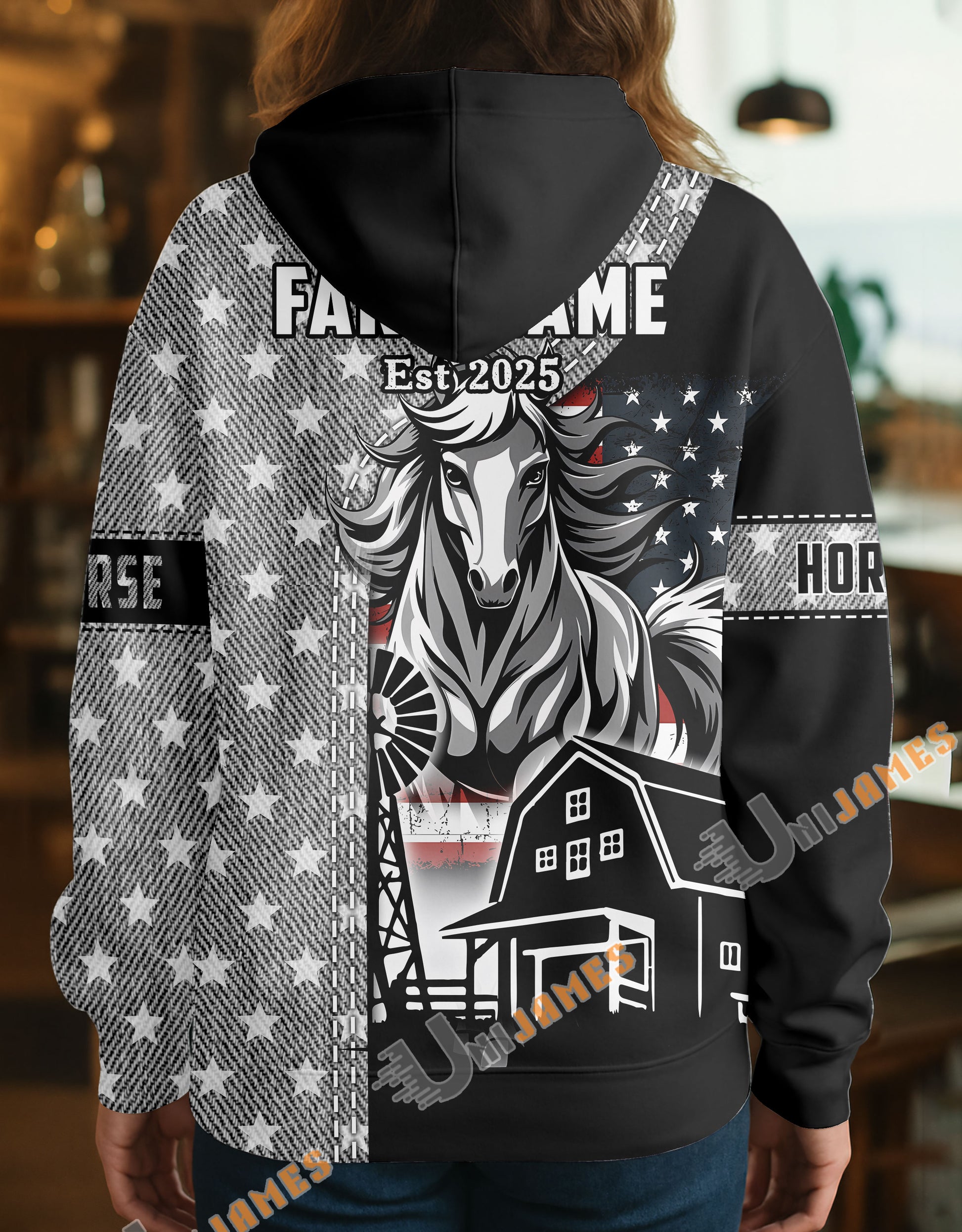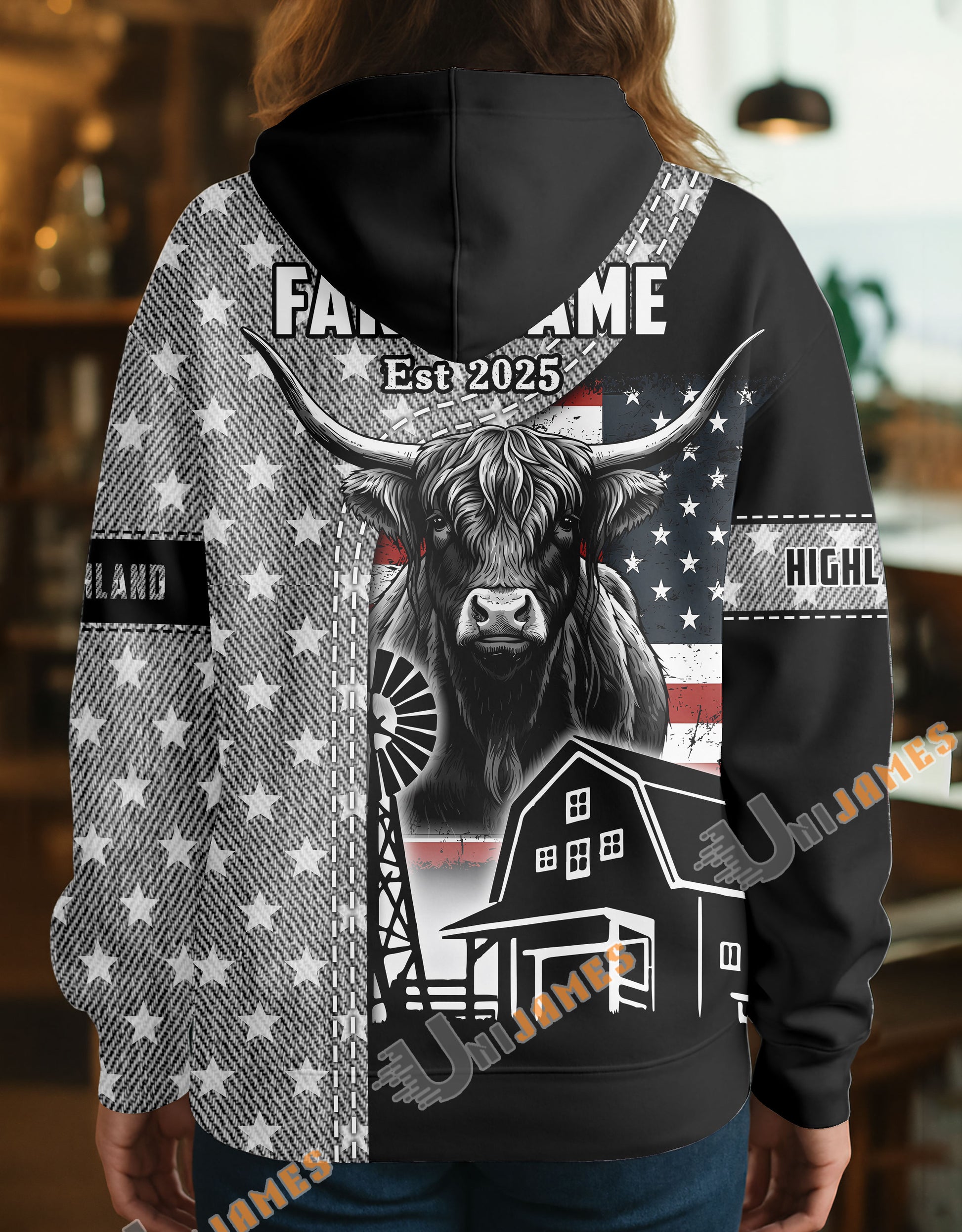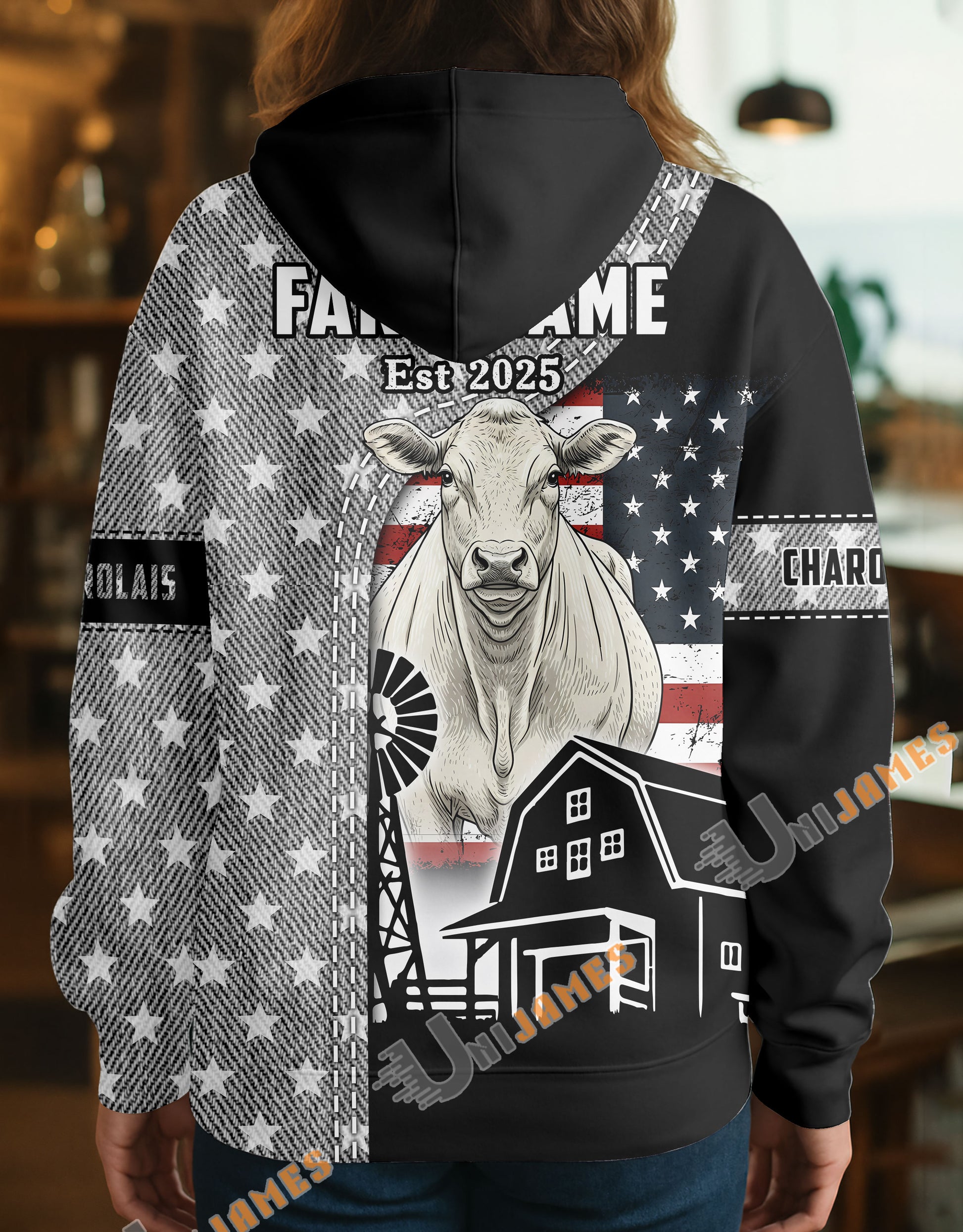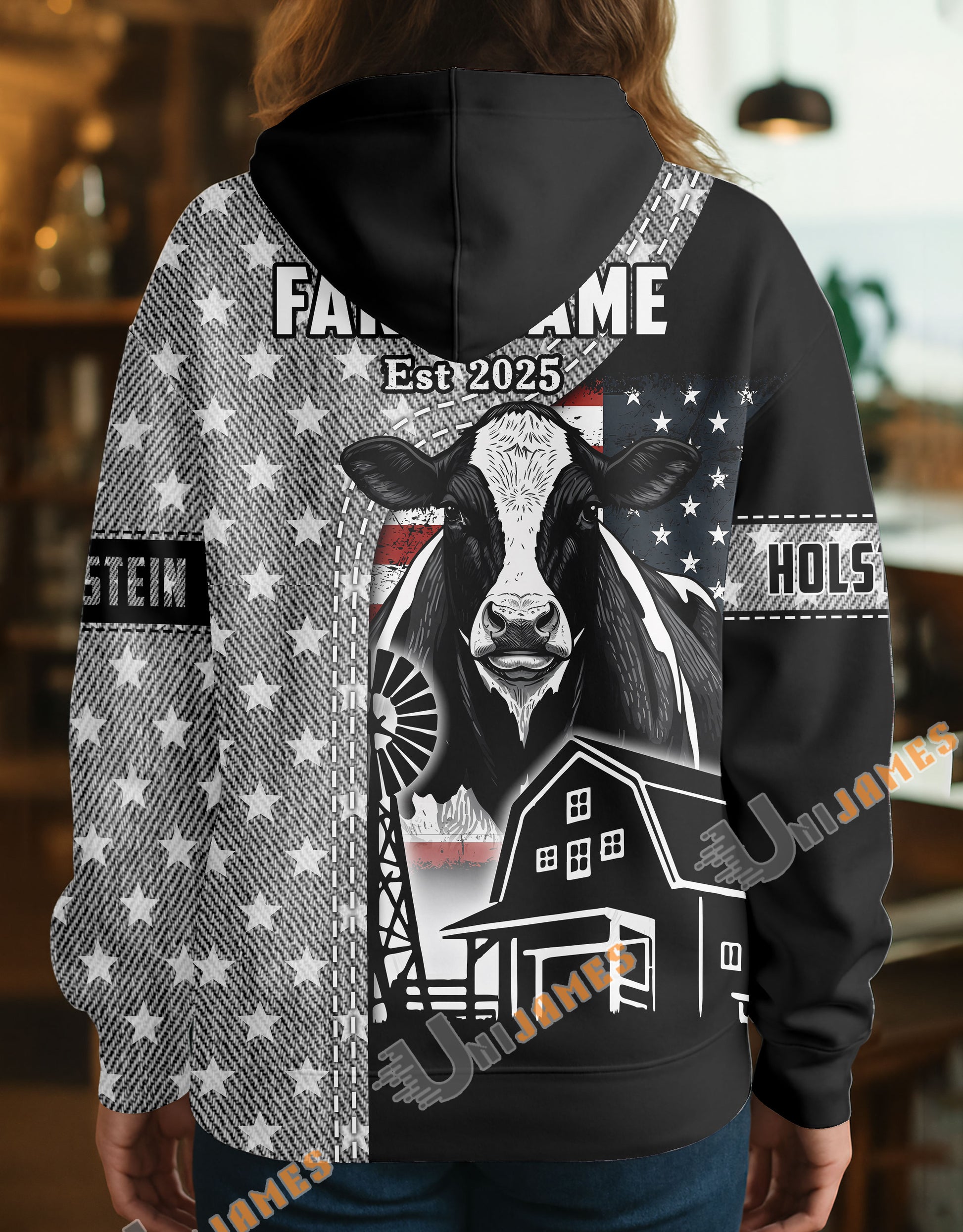 Uni Personalized American Flag Ranch Pattern Name & Farm Name Cattle Hoodie