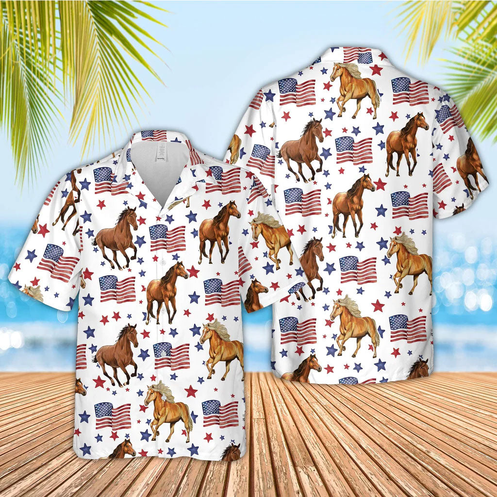 Unique Horse American Flag Pattern Hawaiian Shirt