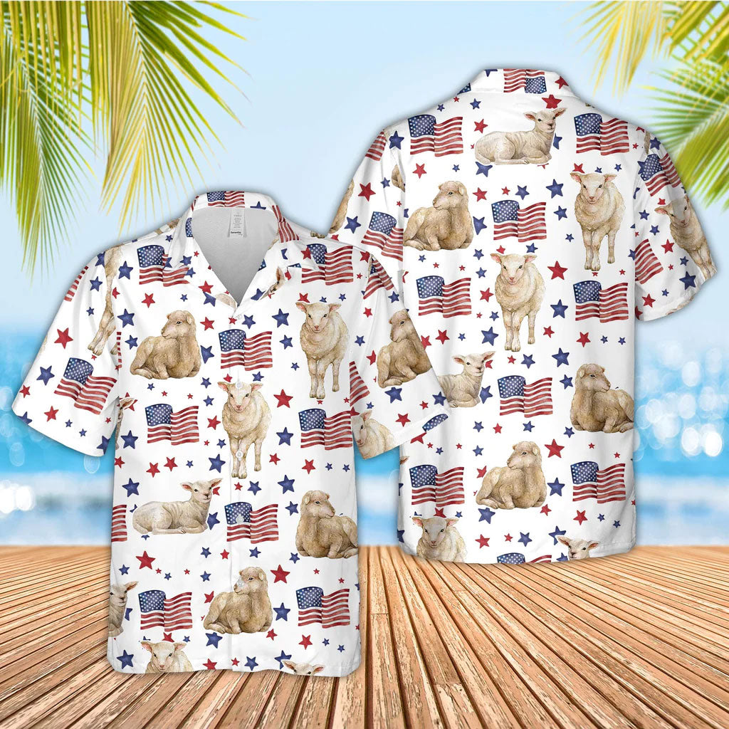 Unique Sheep American Flag Pattern Hawaiian Shirt