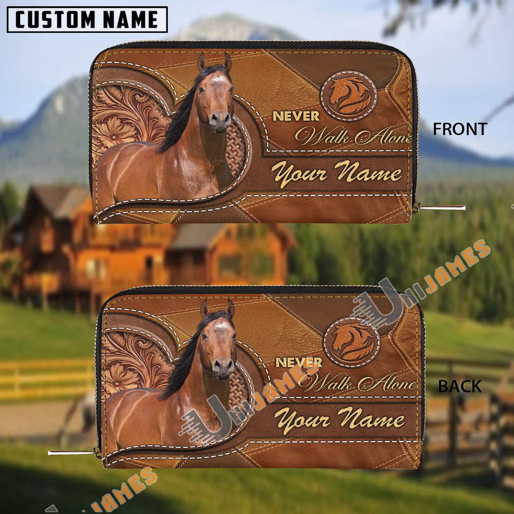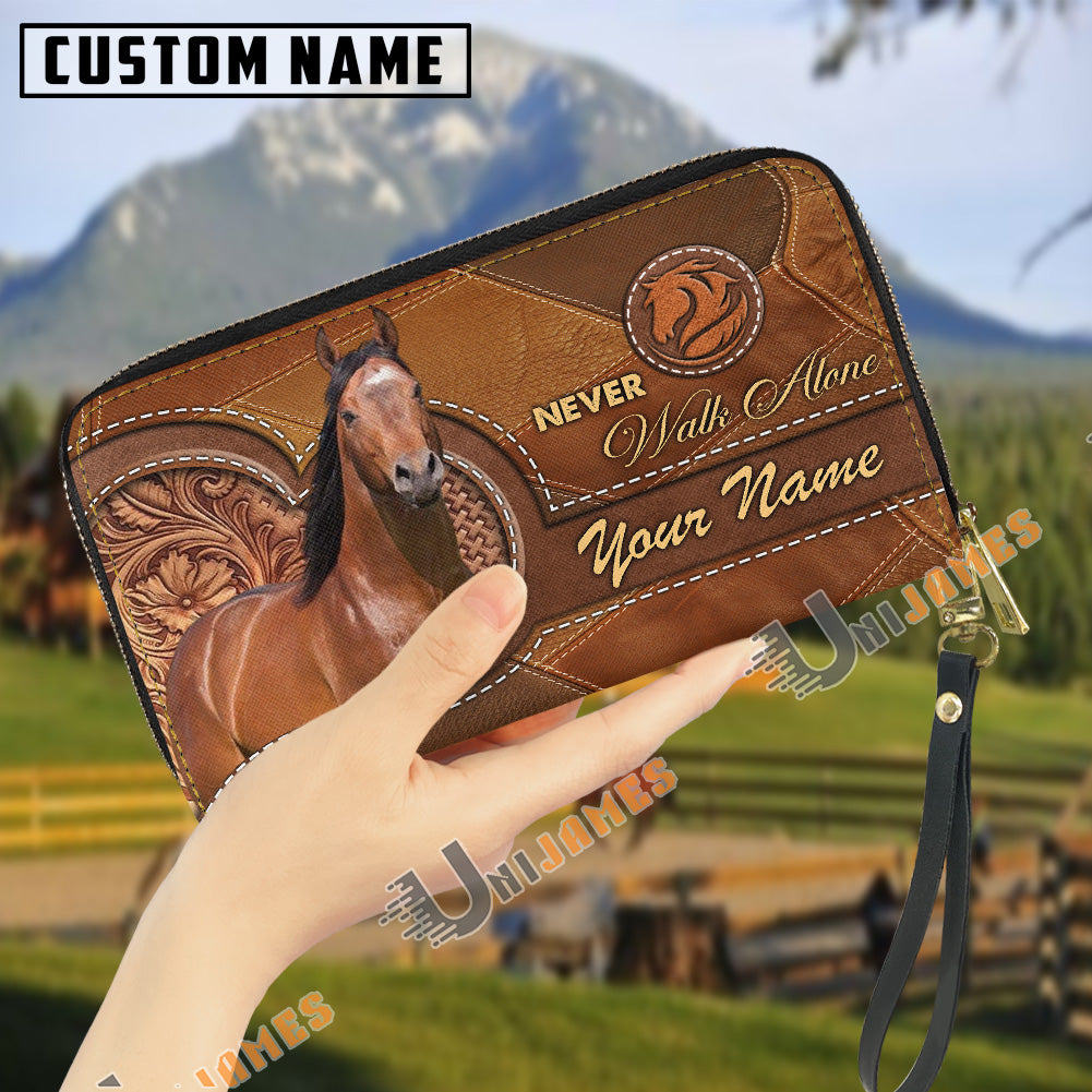 Uni American Quarter Horse Never Walk Alone Custom Name 3D Leather Clutch