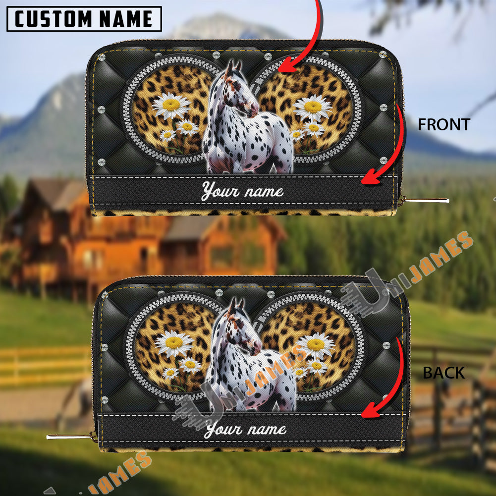 Uni Appaloosa Leather Heart Pattern Custom Name 3D Leather Clutch