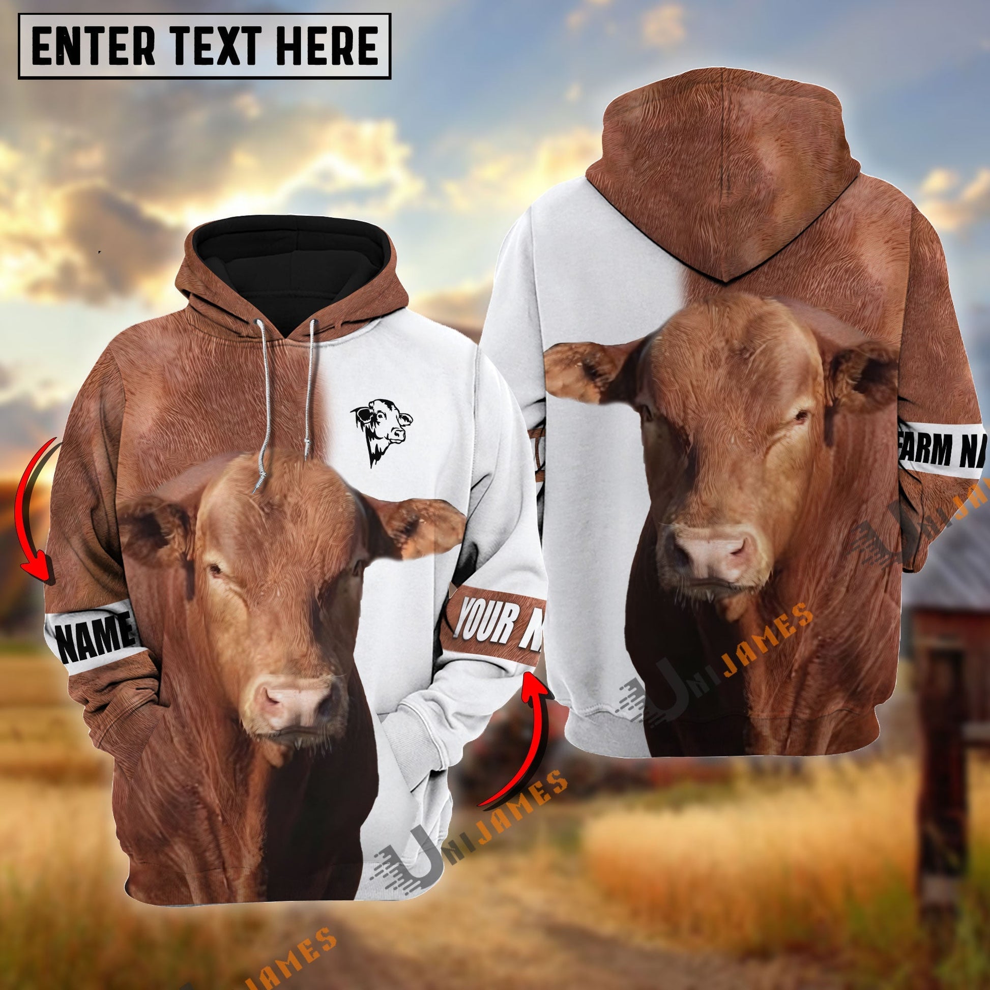 Uni Beefmaster Cattle And White Personalized Name Shirt