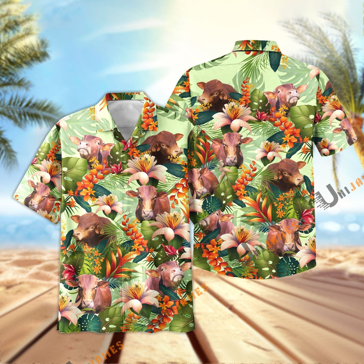 Uni Beefmaster Cool Summer Mint Pattern Hawaiian Shirt