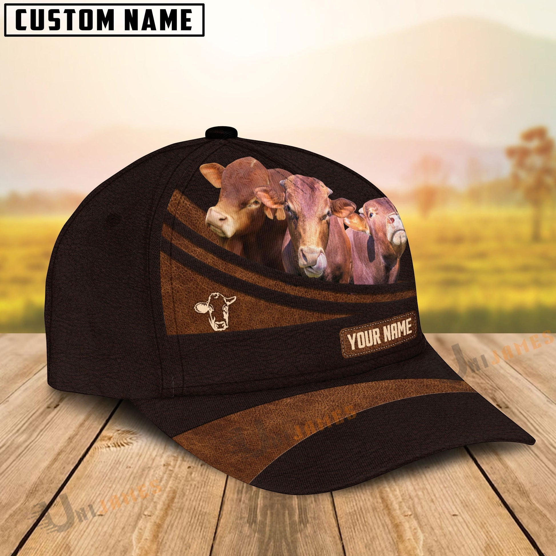 Uni Beefmaster Farm Leather Pattern Customized Name Cap