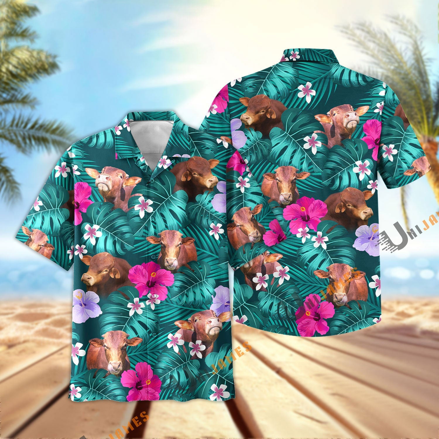 Uni Beefmaster Green Flowers Summer Pattern Hawaiian Shirt