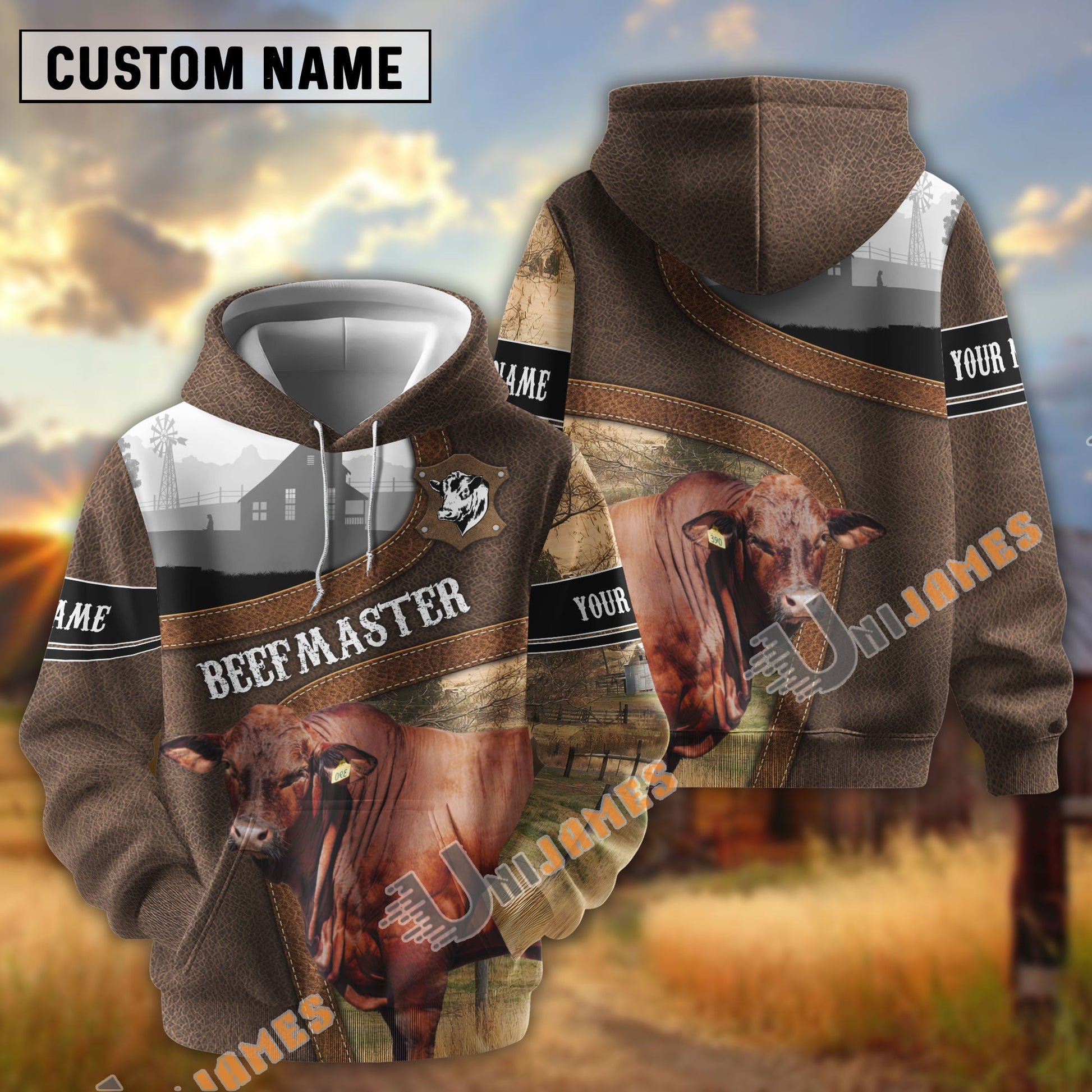 Uni Beefmaster Light Leather Pattern Personalized Name and Farm Name Color Mixed 3D Hoodie
