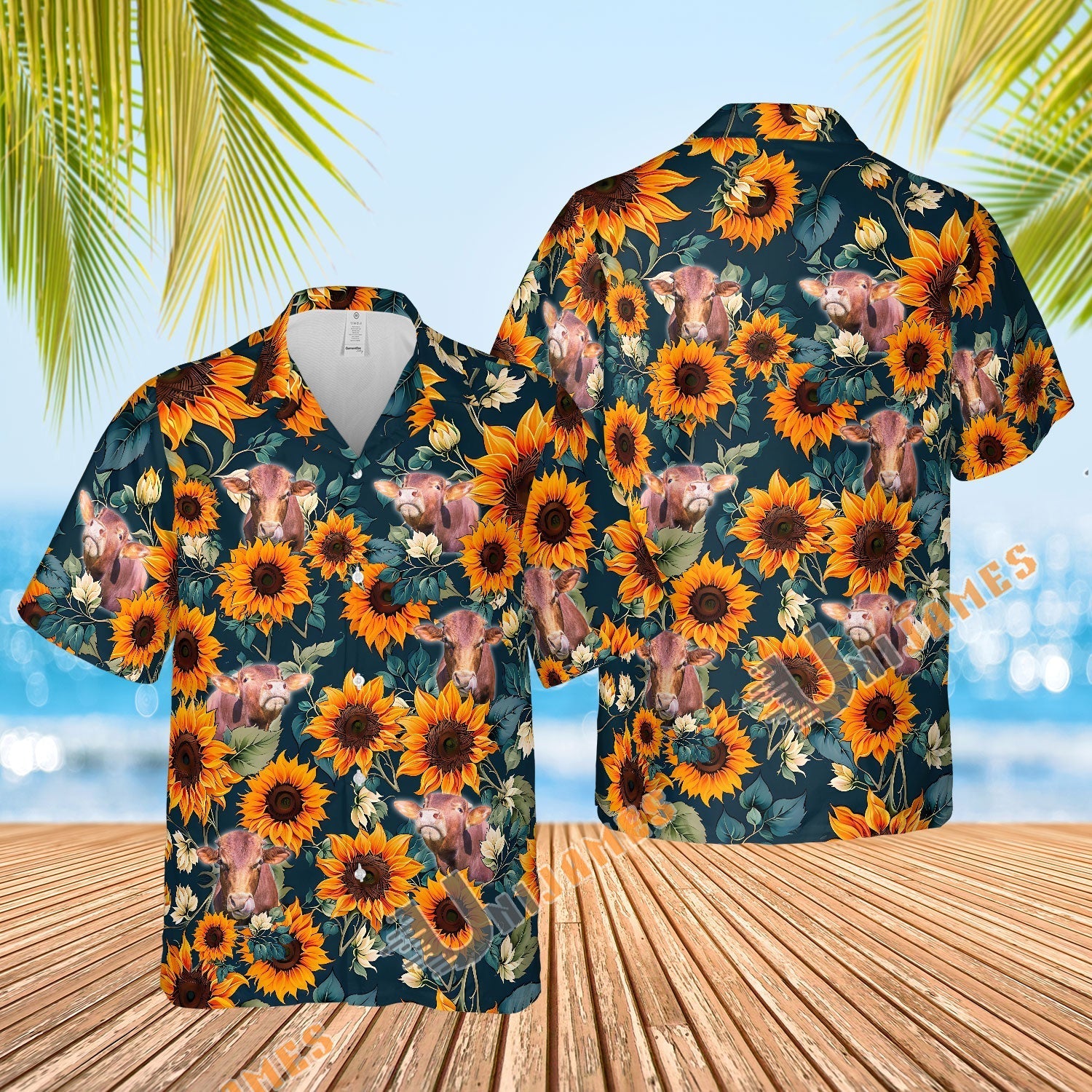 Uni Beefmaster Sunflowers Blue 3D Hawaiian Shirt