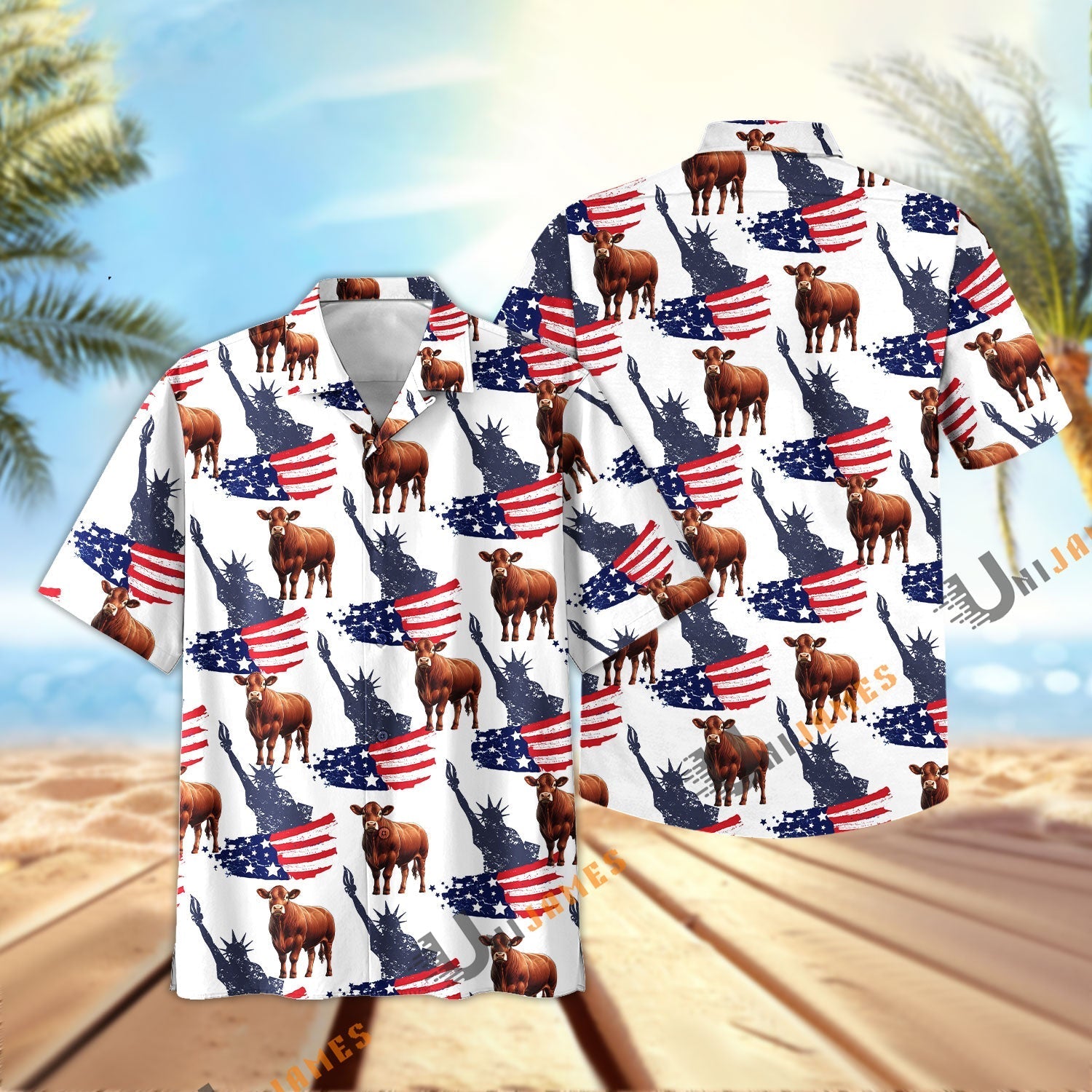 Uni Beefmaster US Flag and Liberty Pattern Hawaiian Shirt