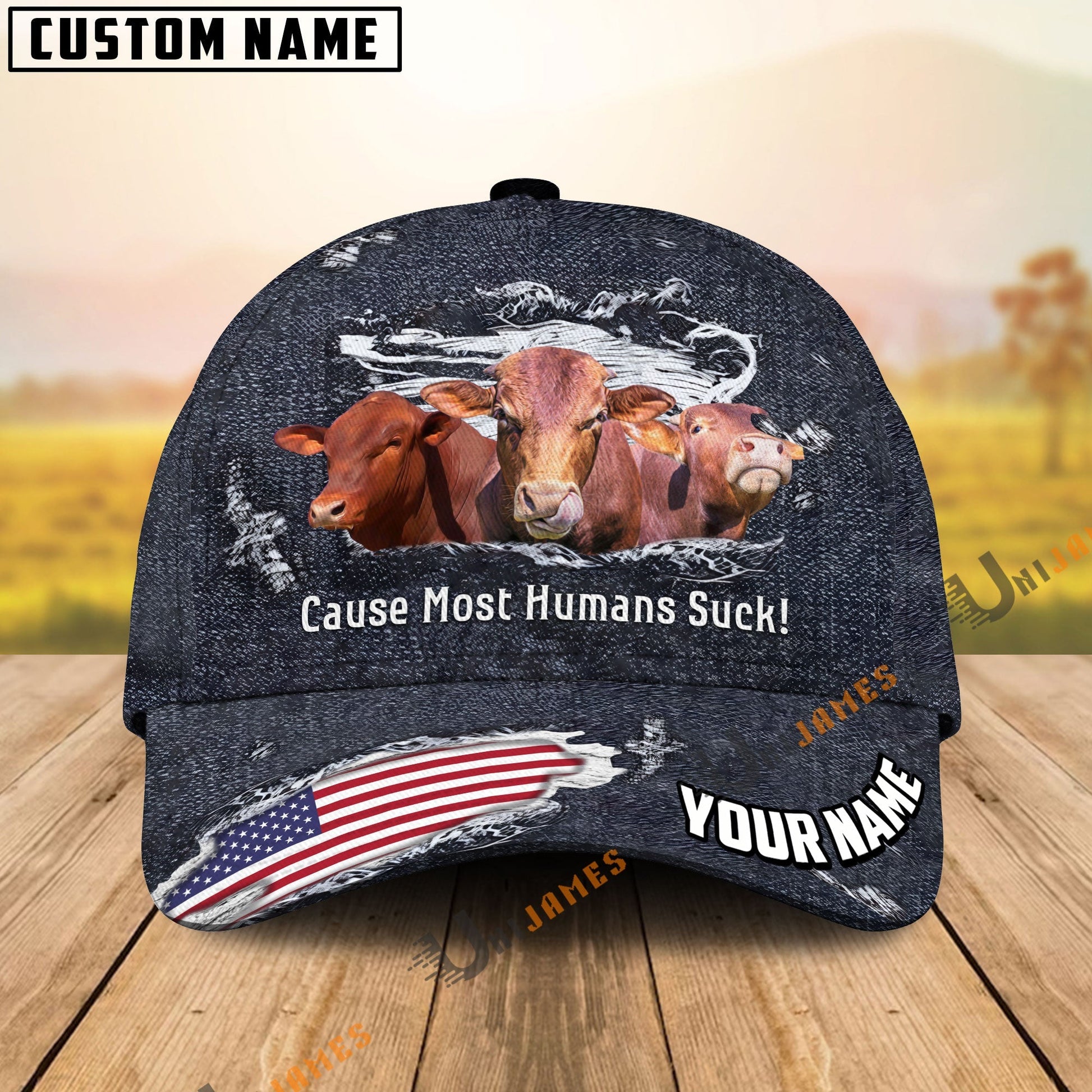 Uni Beefmaster US Flag Dark Jean Pattern Customized Name Cap