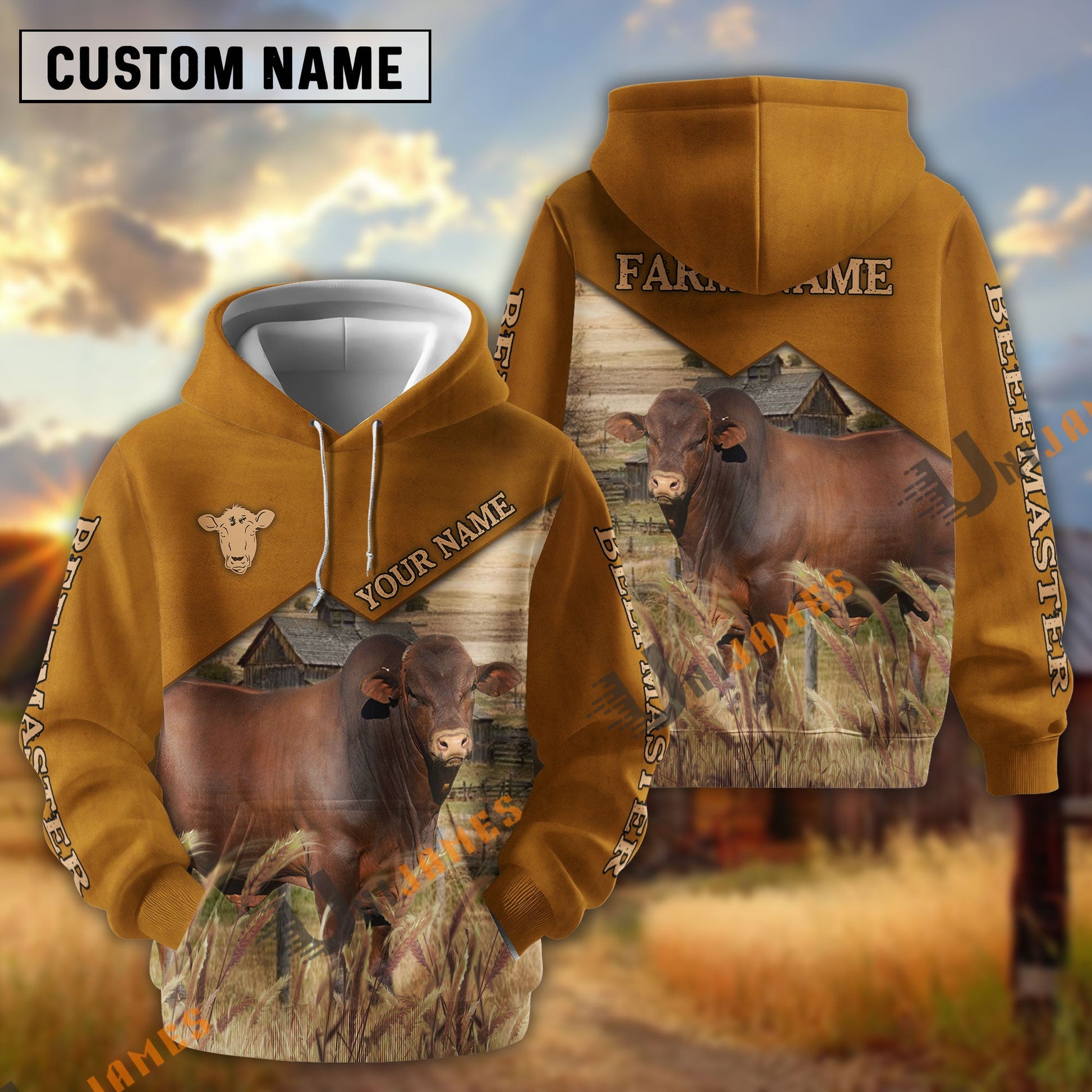 Uni Beefmaster Yellow Leather Pattern Customized Name and Farm Name 3D Hoodie