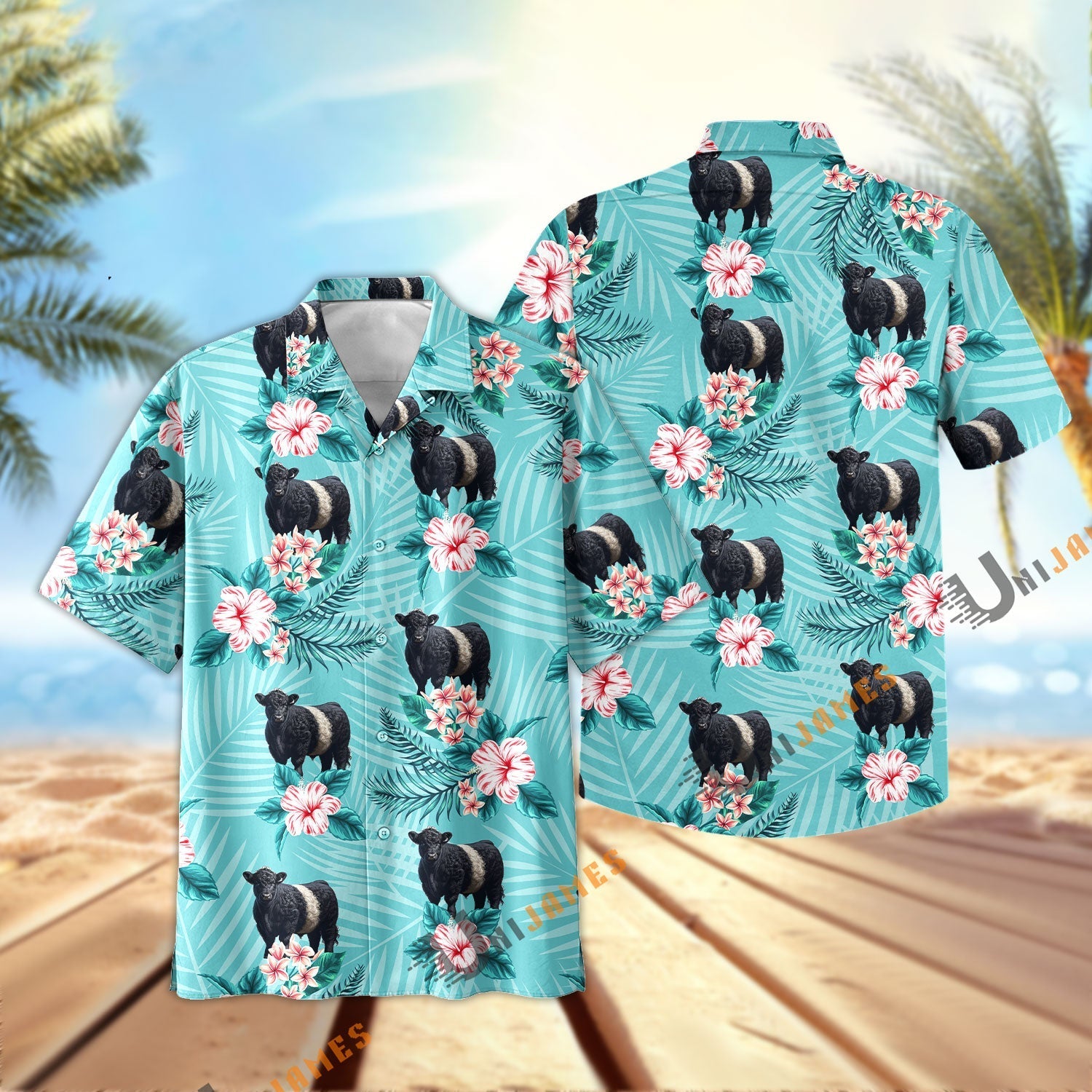 Uni Belted Galloway Aloha Cyan Color Hawaiian Shirt