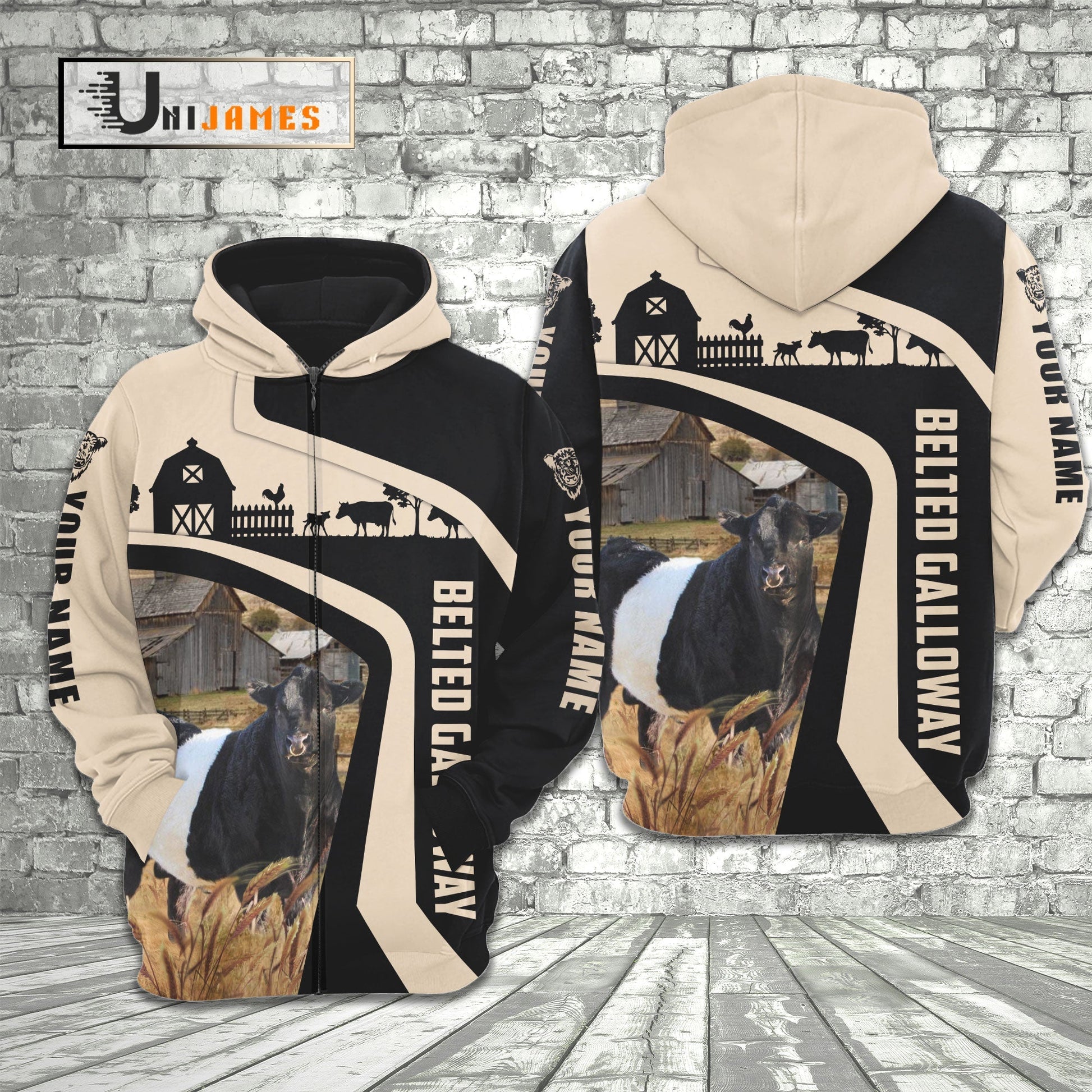 Uni Belted Galloway Black White Custom Name 3D Hoodie