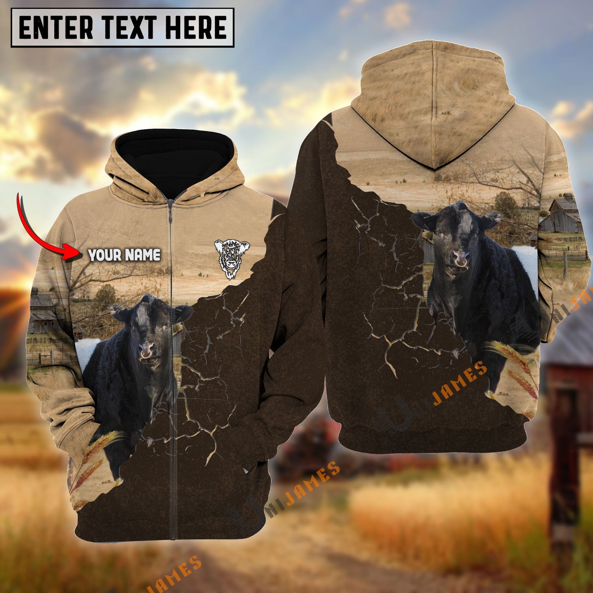Uni Belted Galloway Farm Land Personalized Name Hoodie