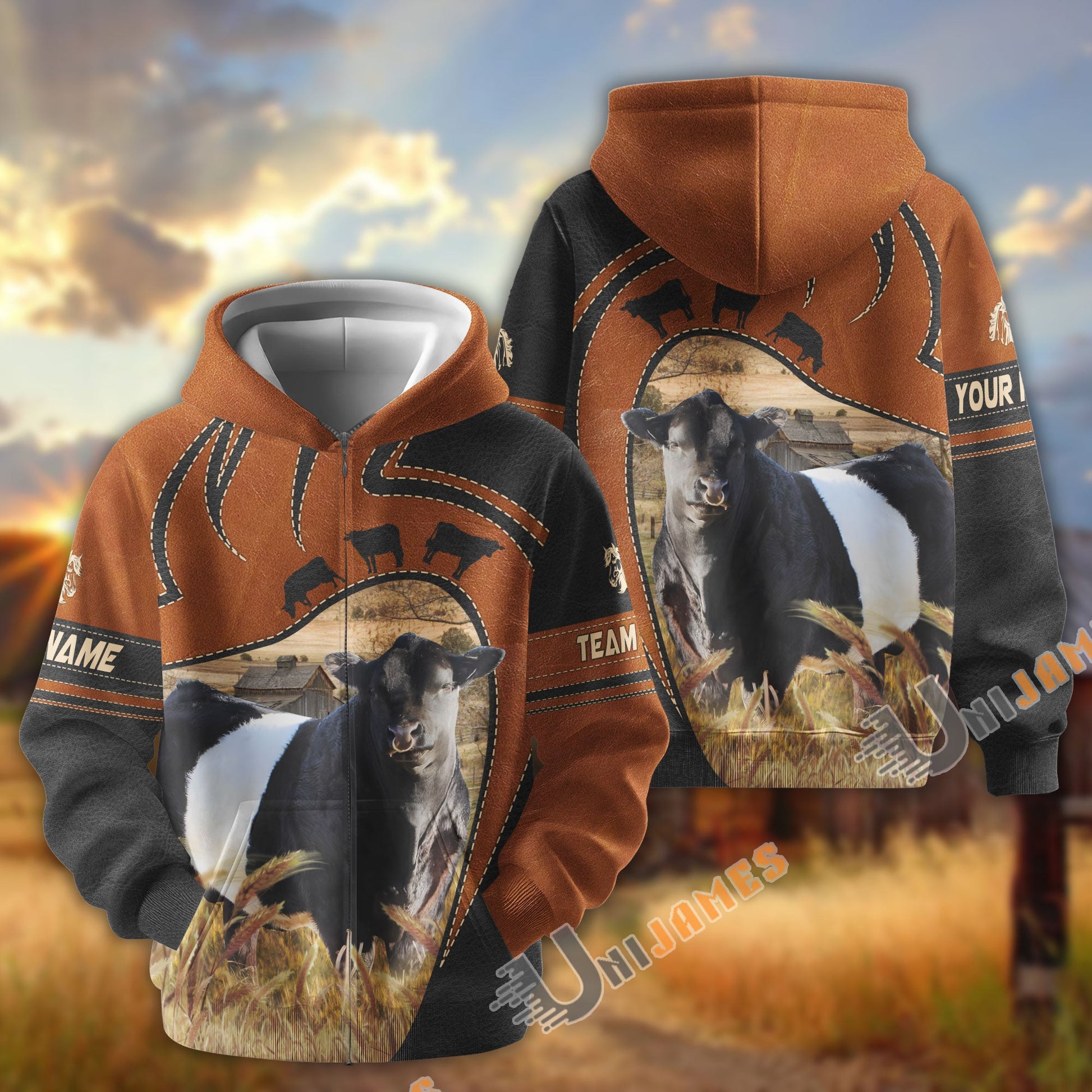Uni Belted Galloway Leather Pattern Custom Name, Farm Name 3D Hoodie