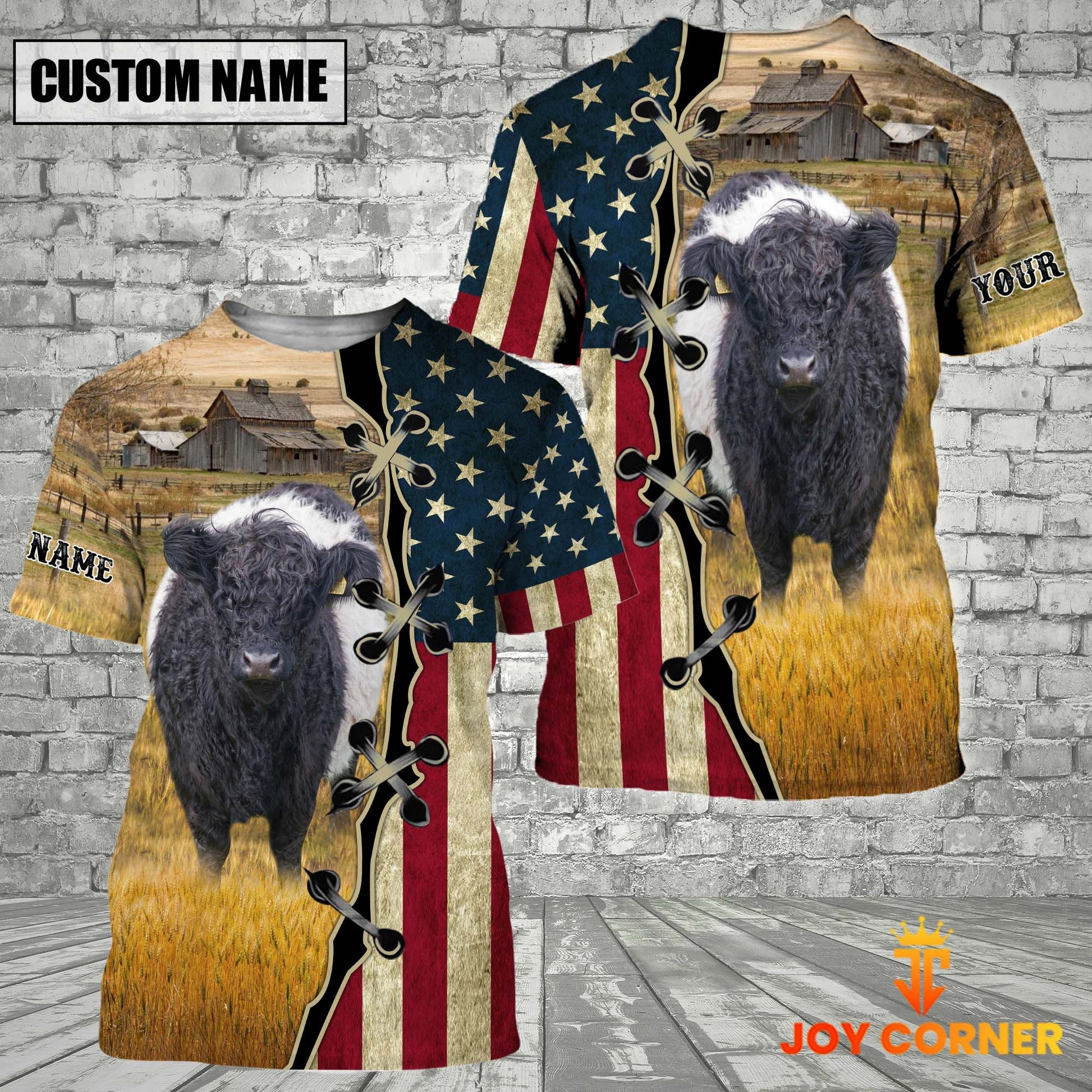 Uni Belted Galloway On Farms Custom Name American Flag 3D Shirt
