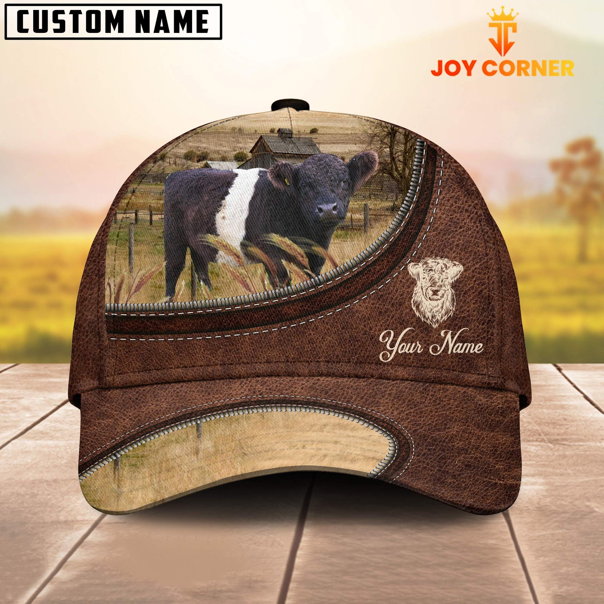 Uni Belted Galloway On The Farm Customized Name Leather Pattern Cap