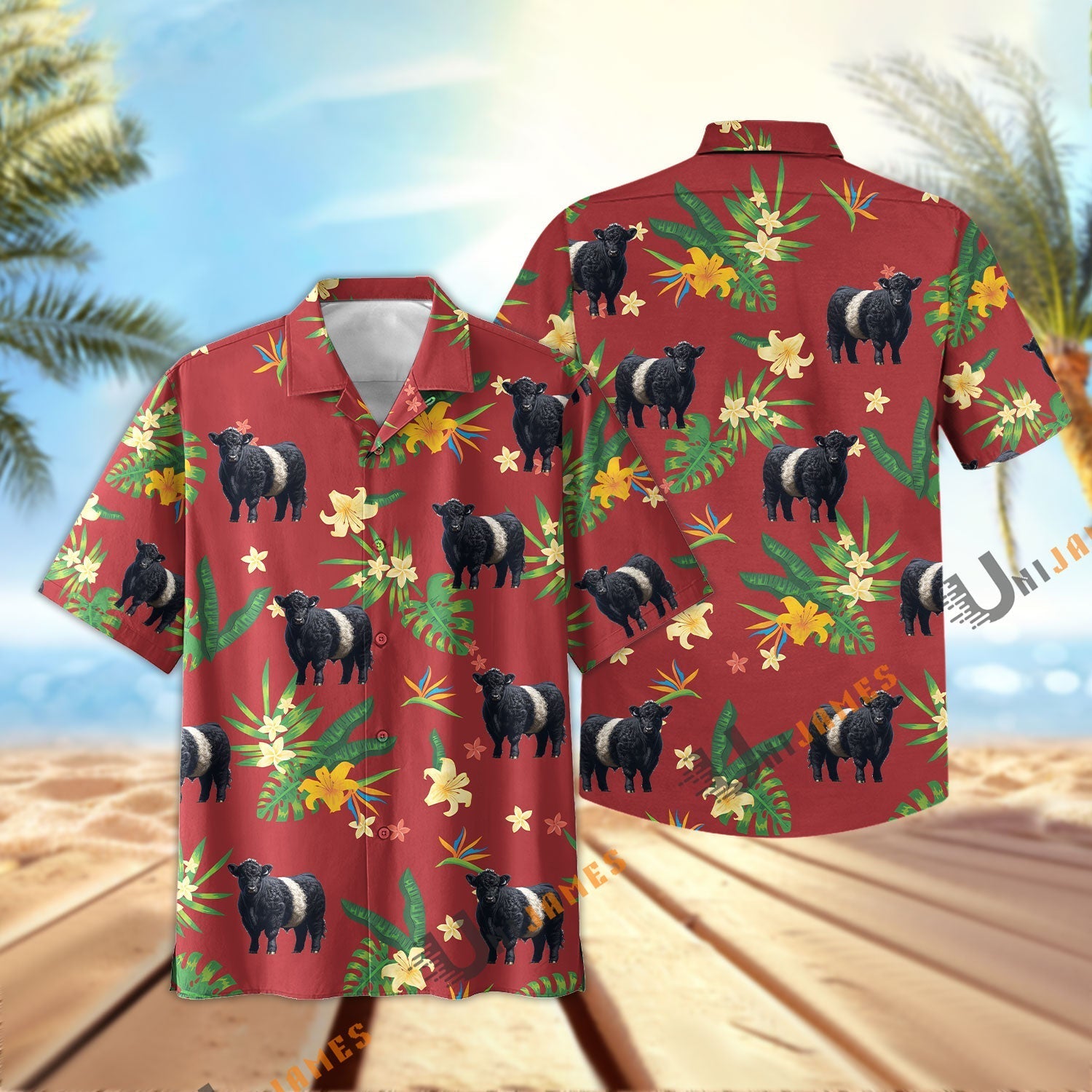 Uni Belted Galloway Vintage Red Summer Hawaiian Shirt