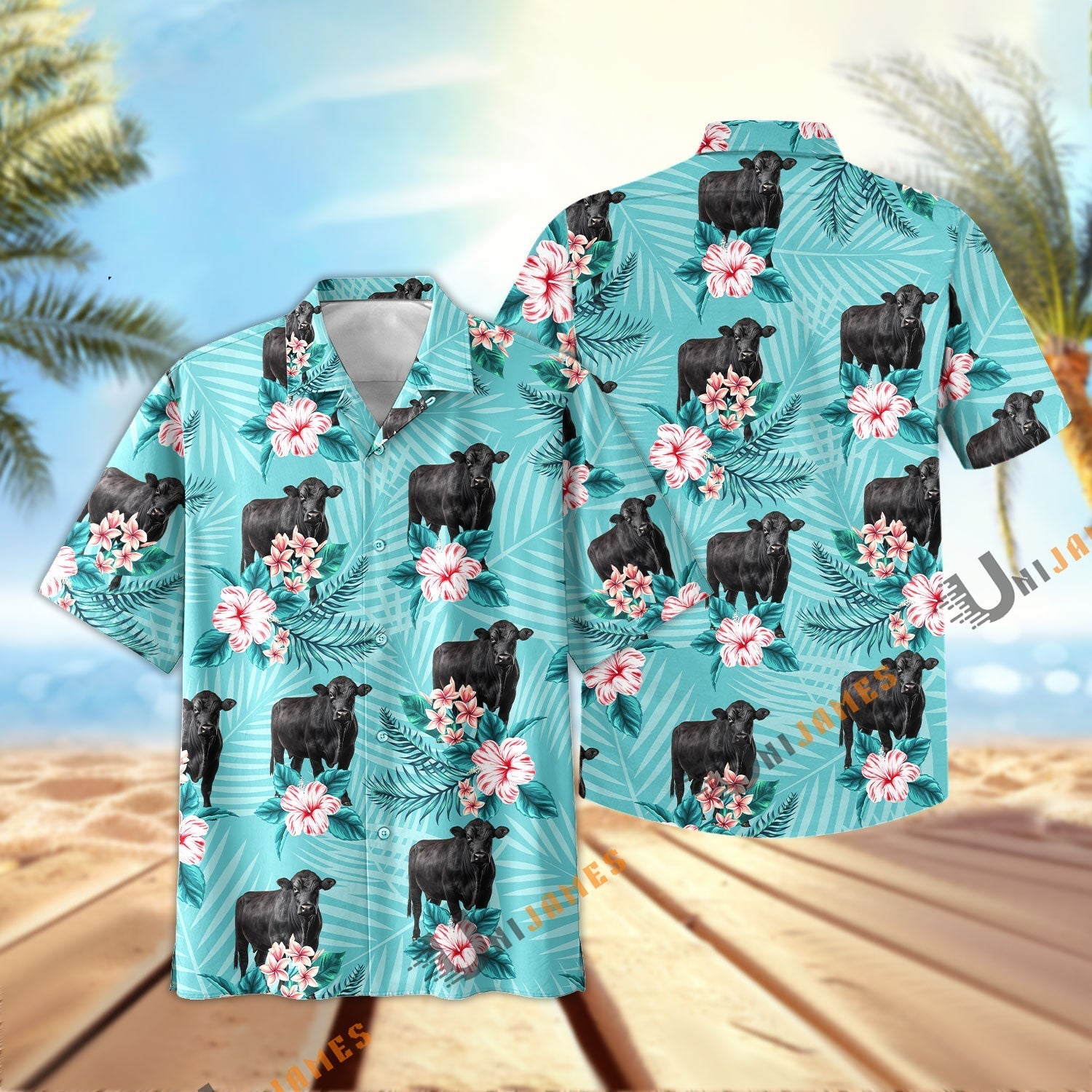 Uni Black Angus Aloha Cyan Color Hawaiian Shirt