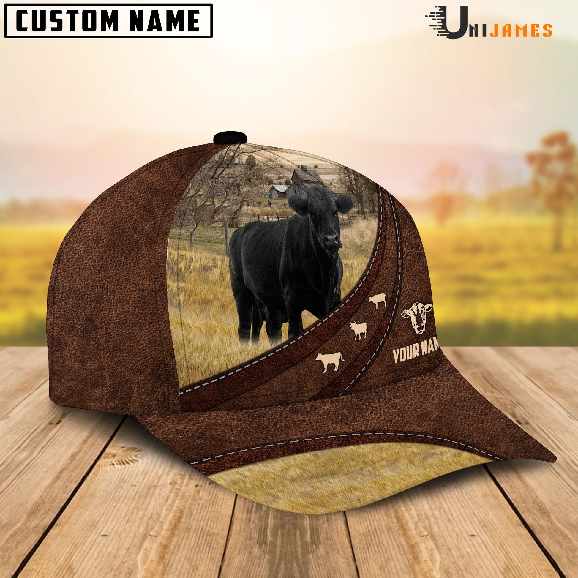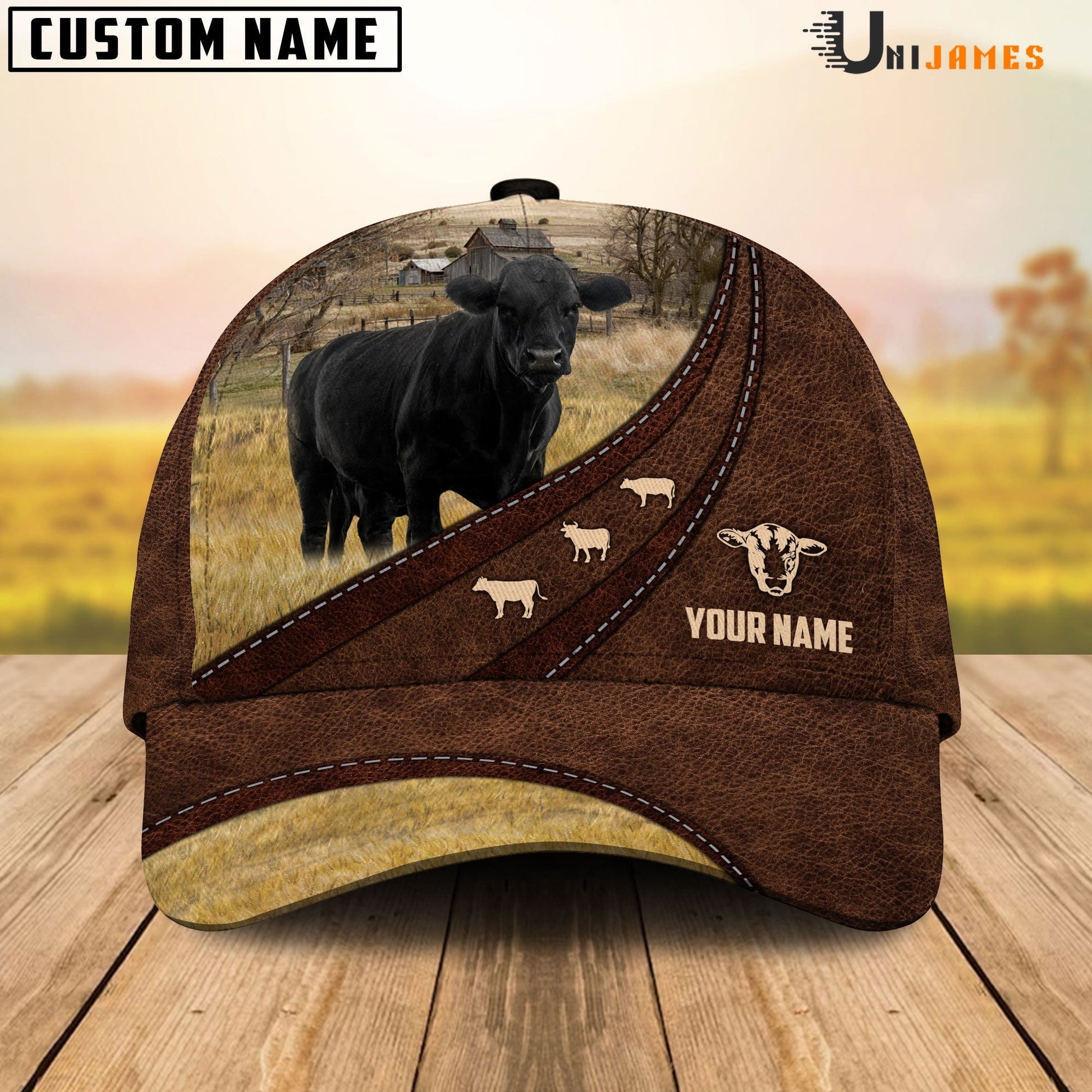 Uni Black Angus Amazing Farm Leather Pattern Customized Name Cap
