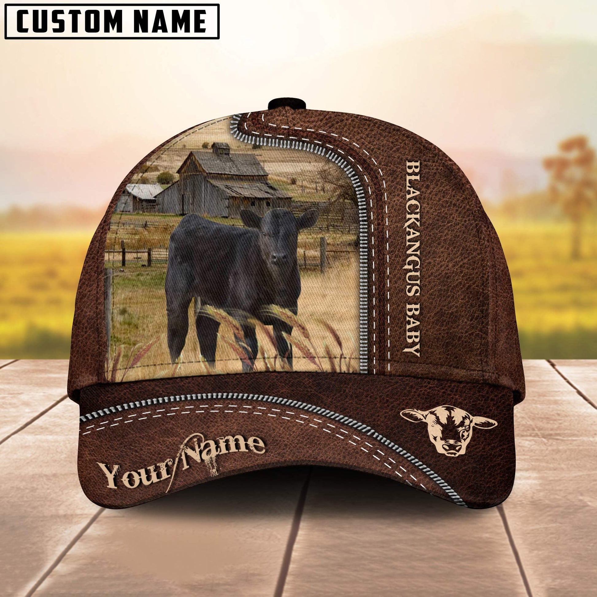 Uni Black Angus 2 Customized Name Leather Pattern Cap