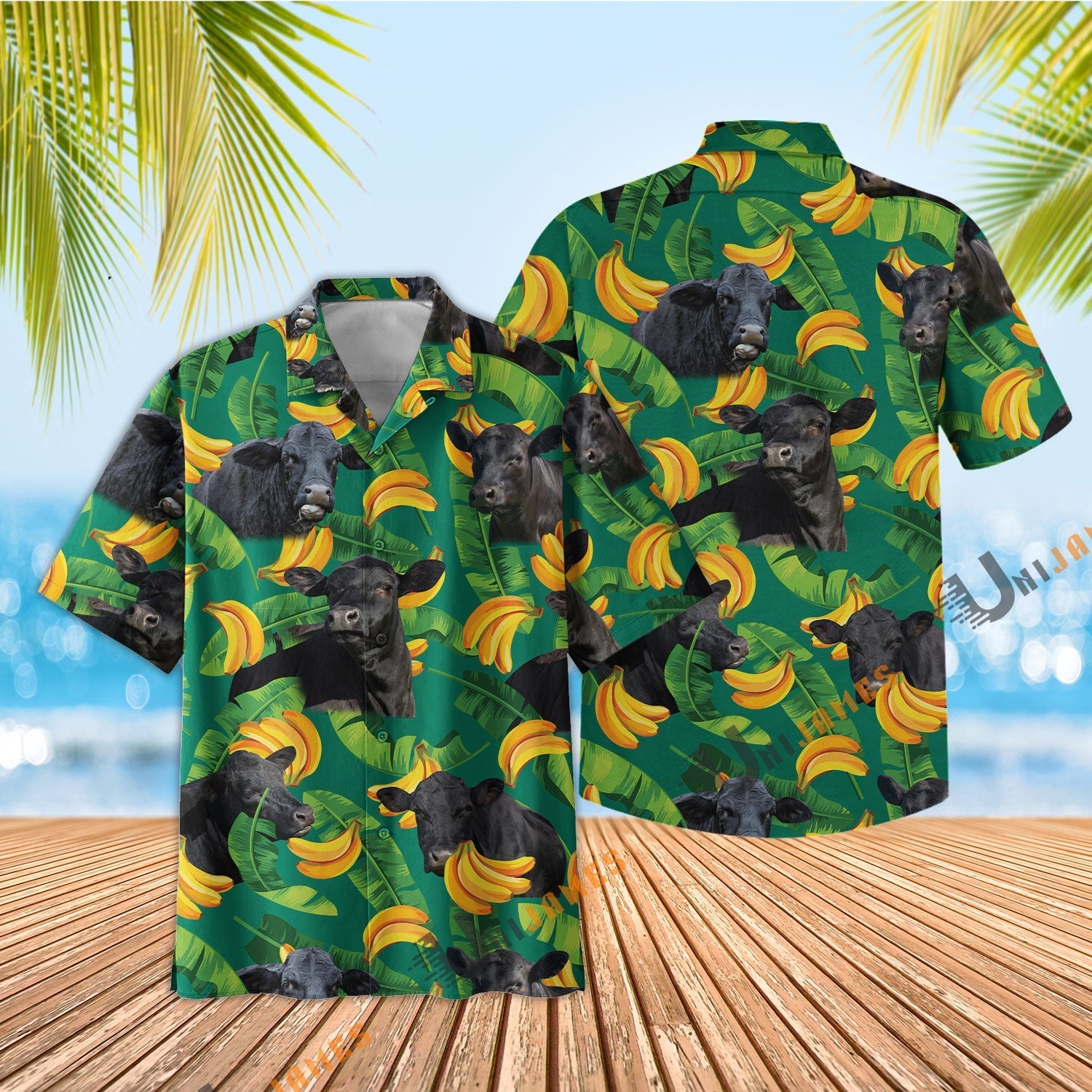 Uni Black Angus Banana Green Summer Hawaiian Shirt