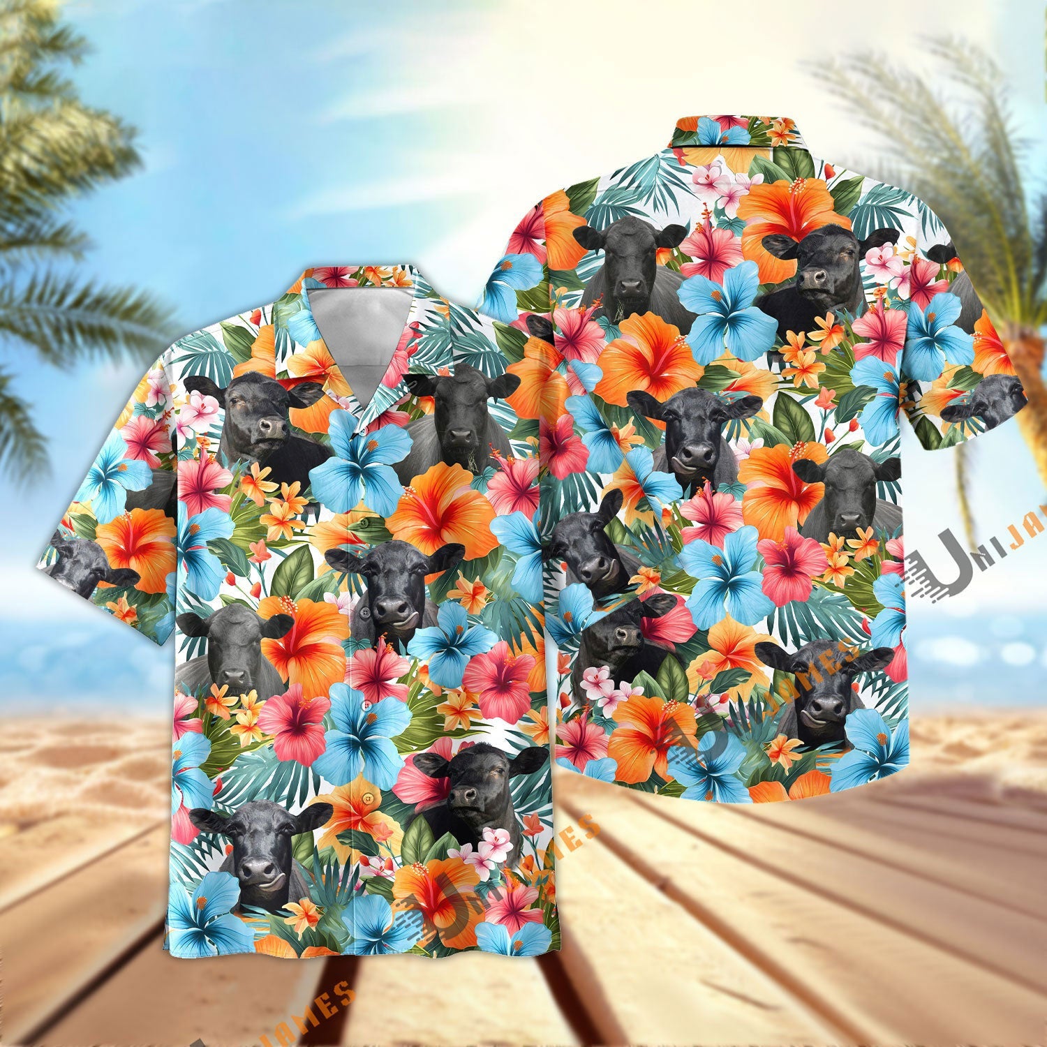 Uni Black Angus Blue Colorful Summer Pattern Hawaiian Shirt
