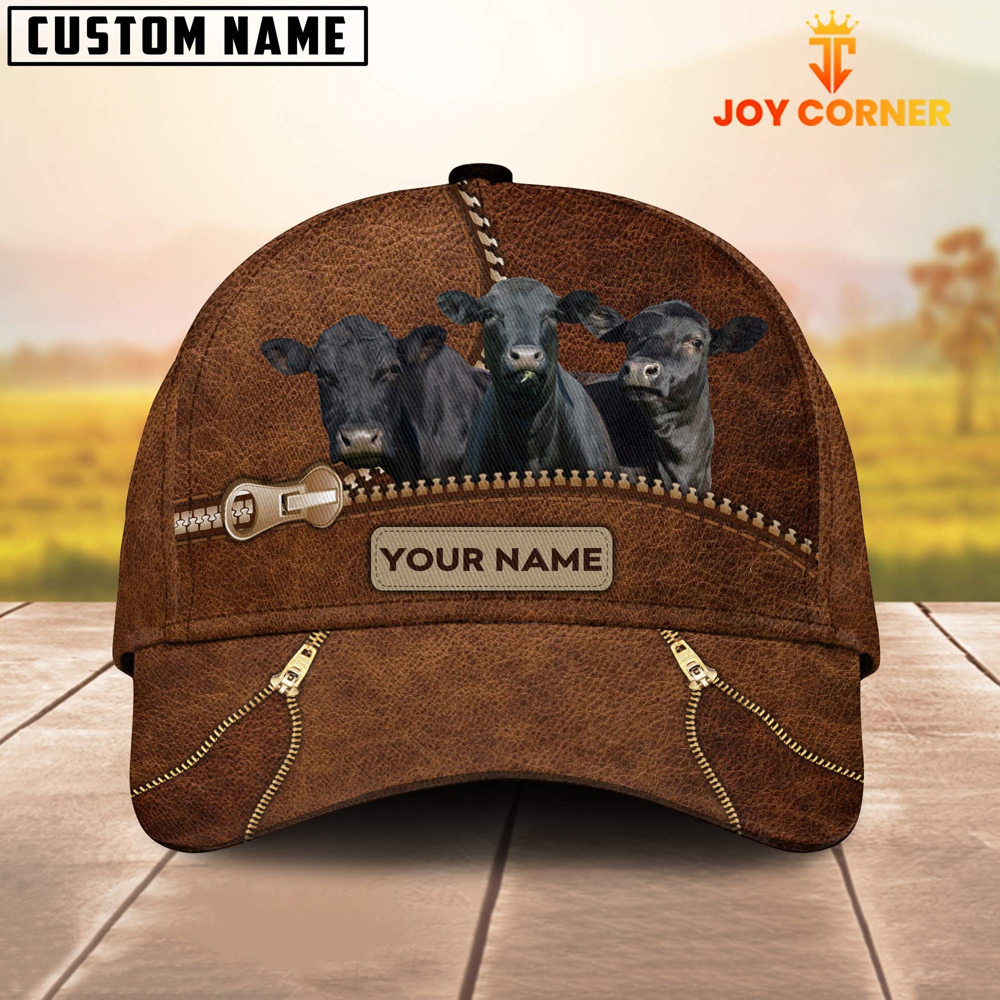 Uni Black Angus Cattle Zipper Pattern Customized Name Cap