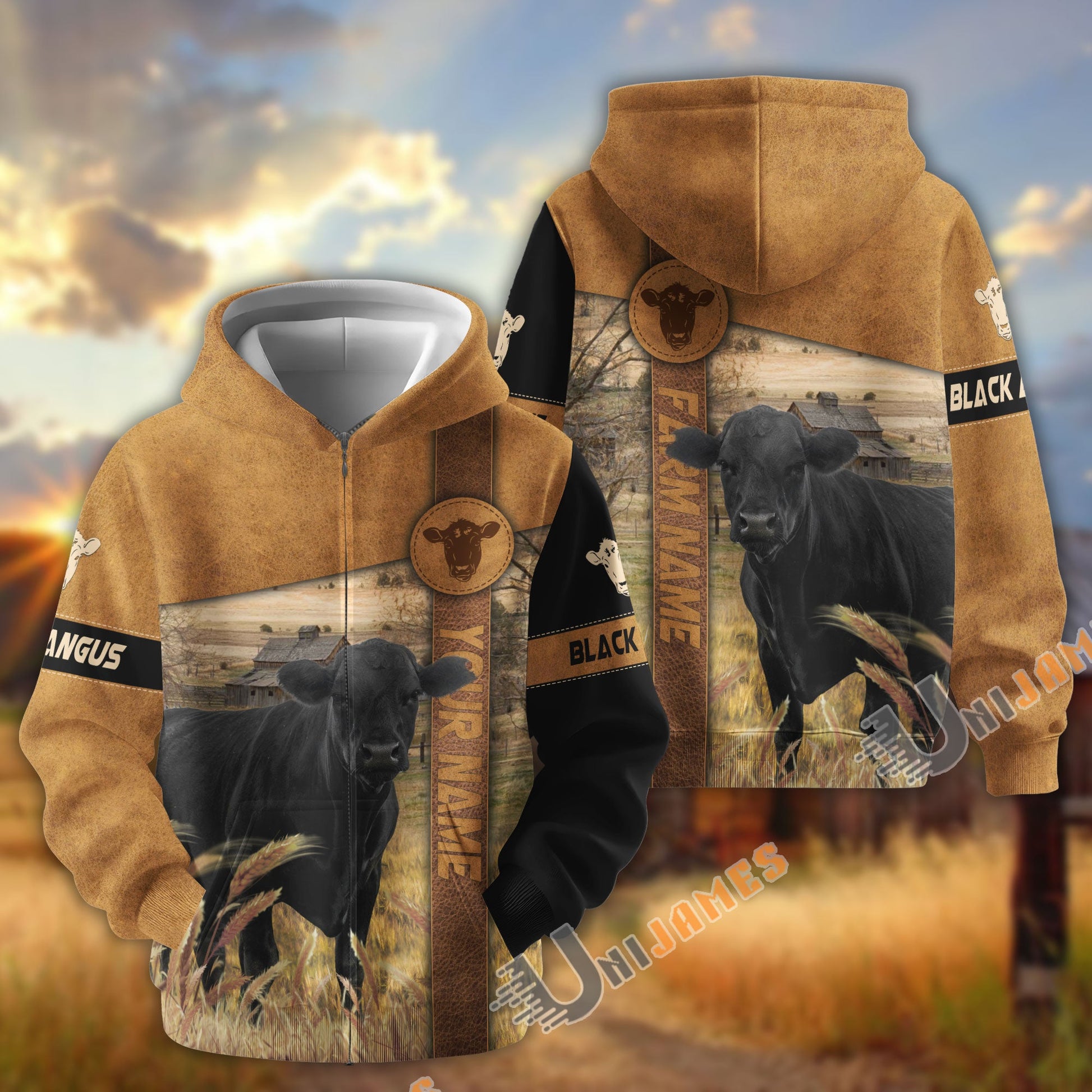 Uni Black Angus Customize Name, Farm Name Brown Pattern Hoodie