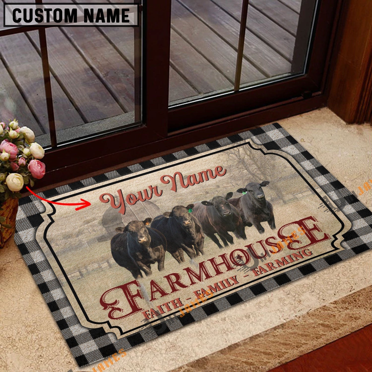 Uni Black Angus Faith Family Farming Black Border Custom Name Doormat