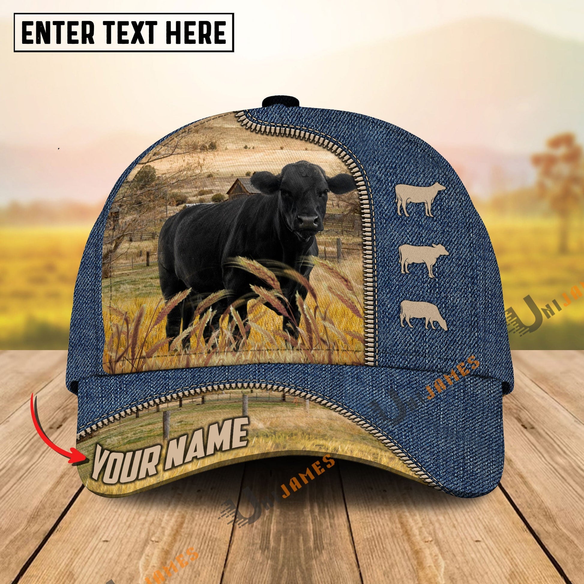 Uni Black Angus Farm Jeans Pattern Customized Name Cap