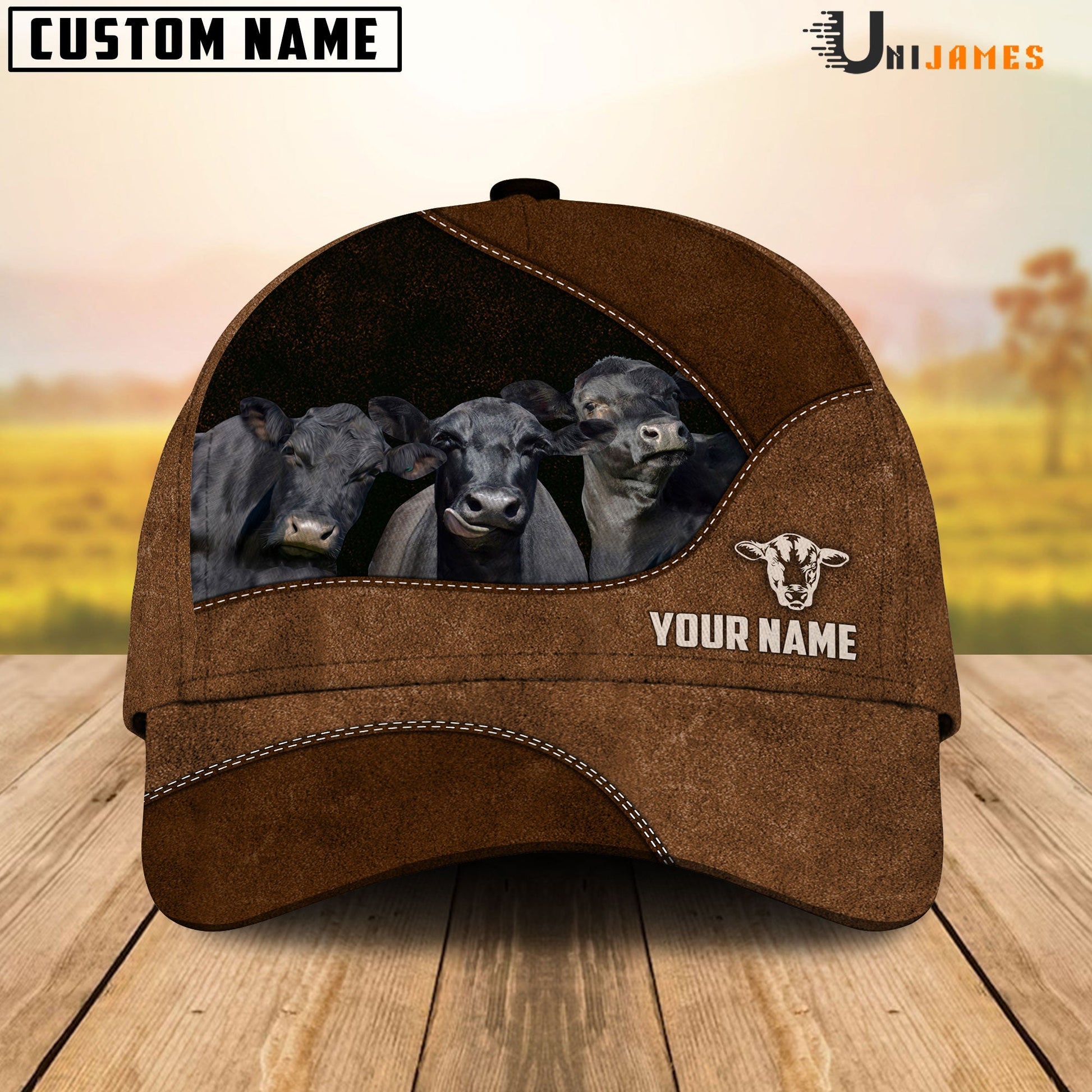 Uni Black Angus Happiness Farming Life Customized Name Cap