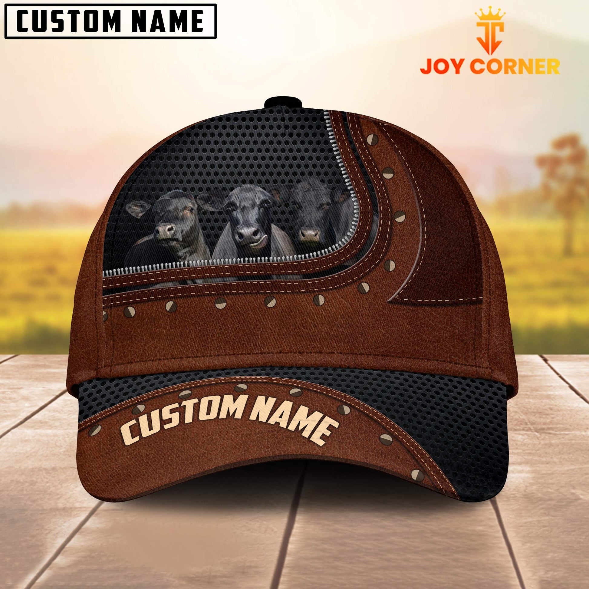 Uni Black Angus Happiness Zipper Pattern Customized Name Cap