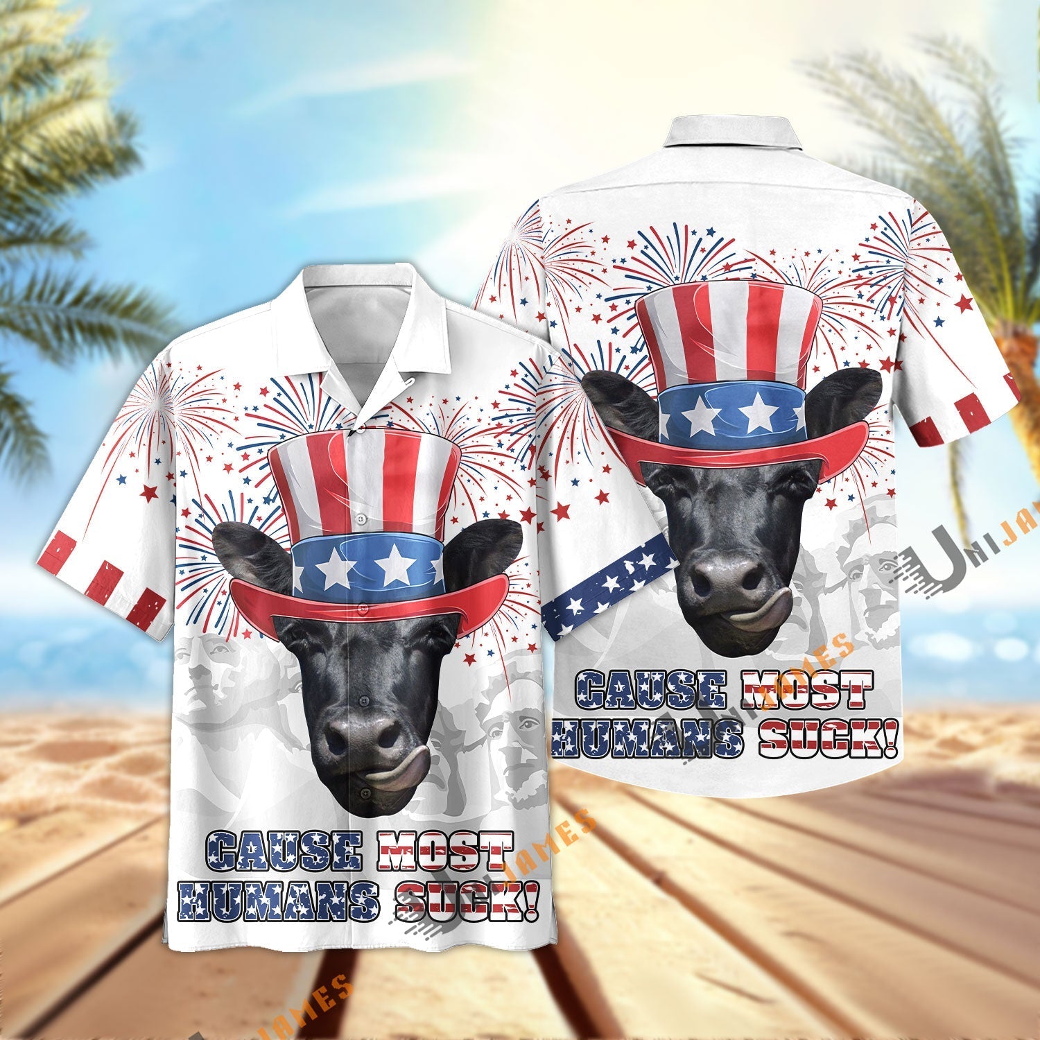 Uni Black Angus Happy 4th July Hawaiian Shirt