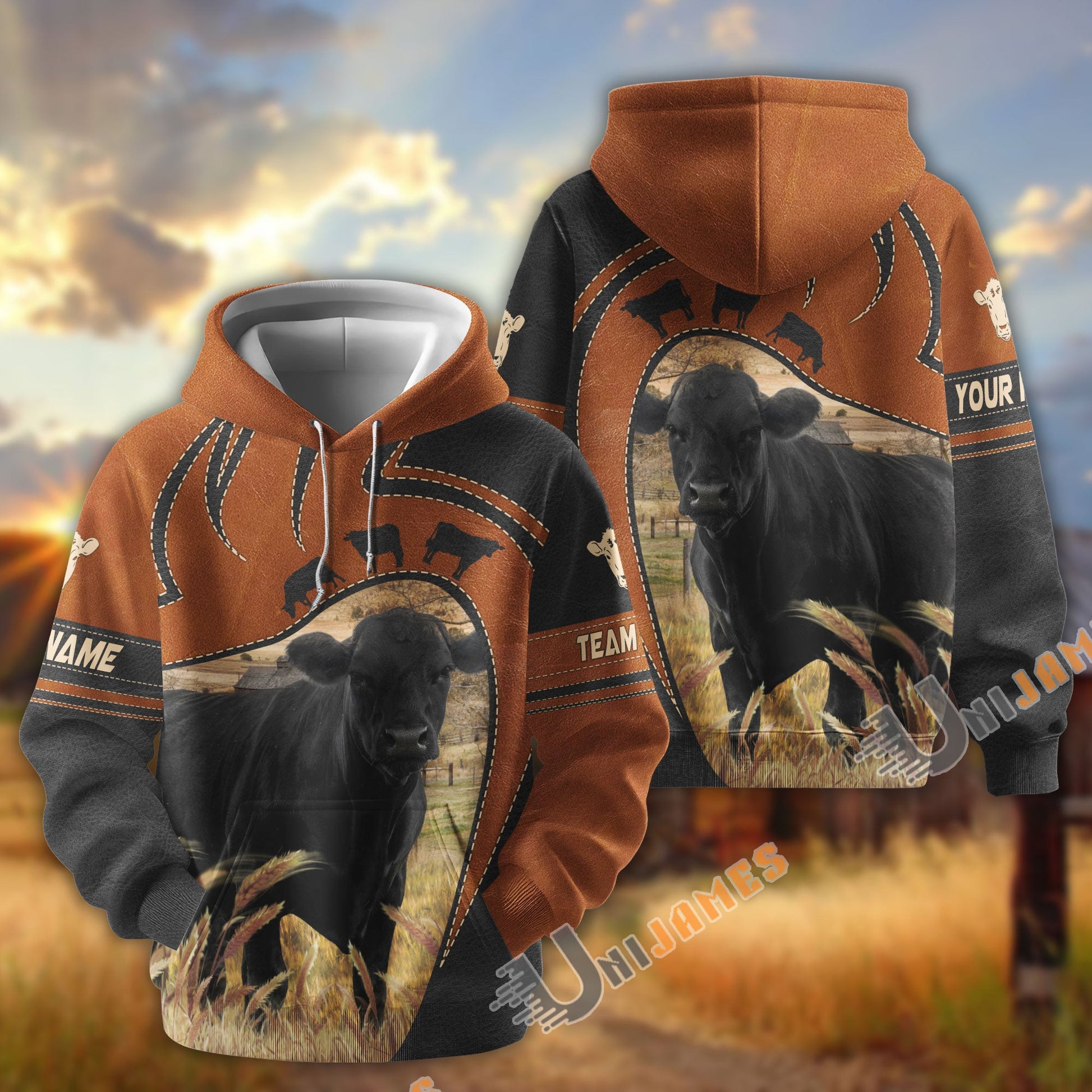 Uni Black Angus Leather Pattern Custom Name, Farm Name 3D Hoodie