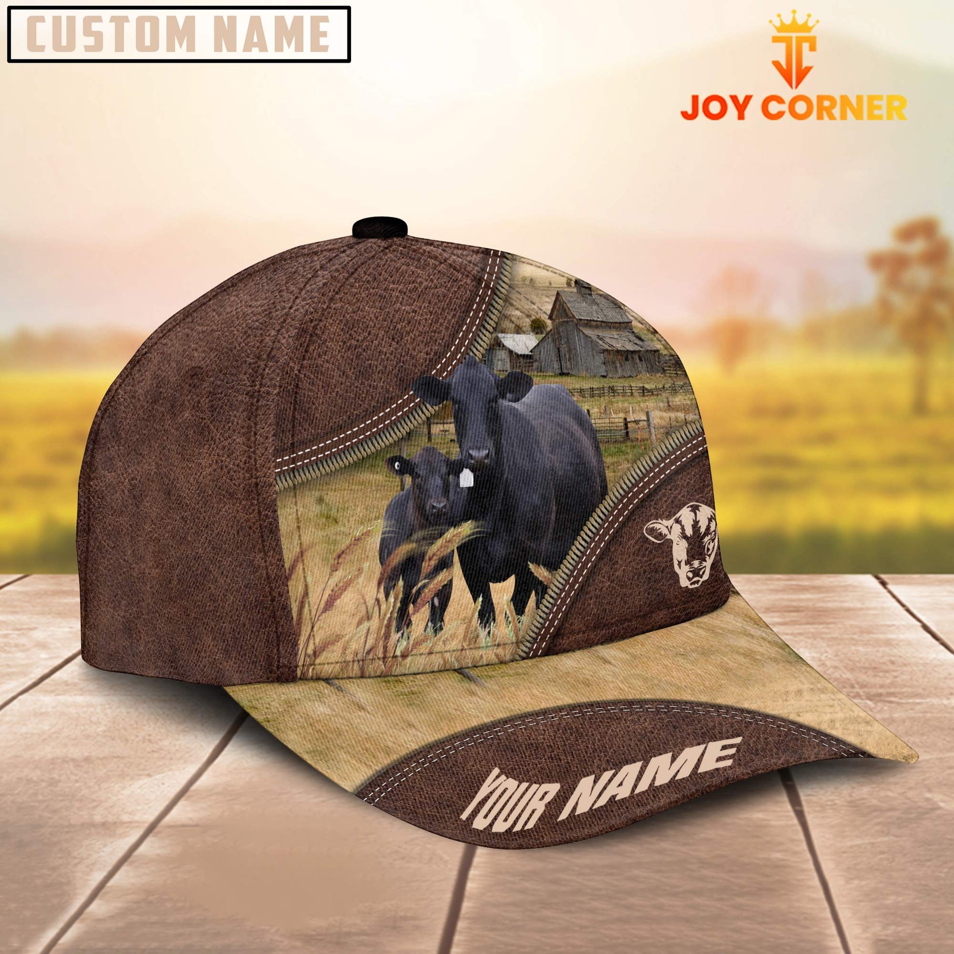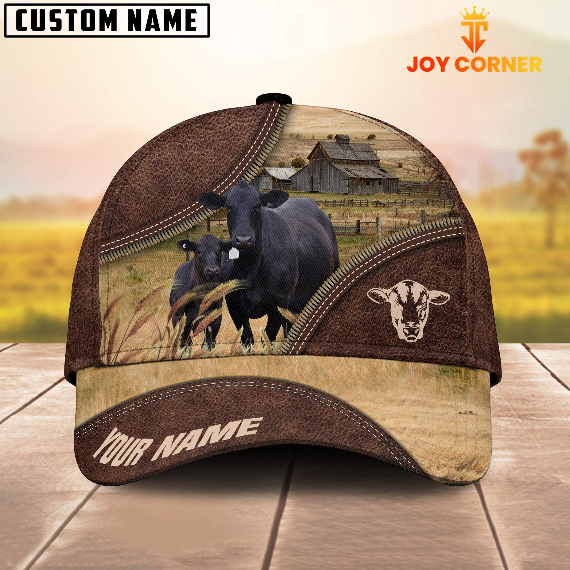 Uni Black Angus On The Farm Customized Name 3D Brown Cap