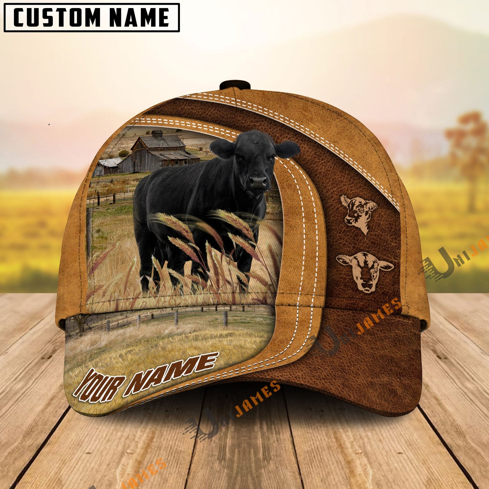 Uni Black Angus Ranch Lift Leather Pattern Customized Name Cap
