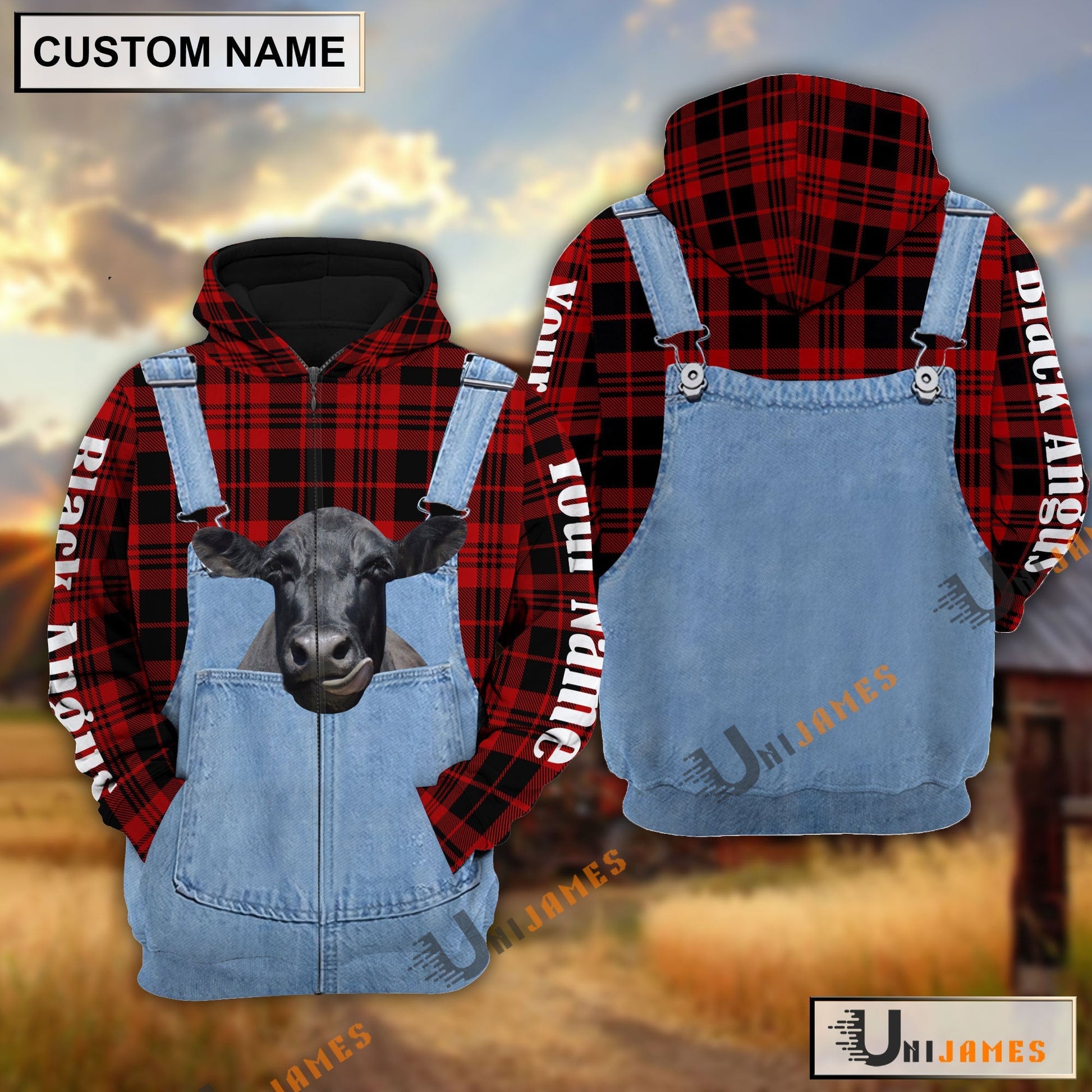 Uni Black Angus Red Jeans Pattern Personalized Name 3D Hoodie