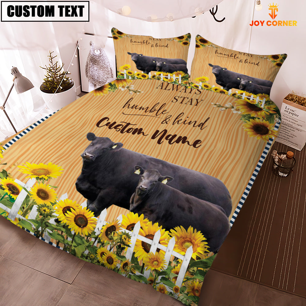 Uni Black Angus Stay Humble And Kind Custom Name Bedding Set