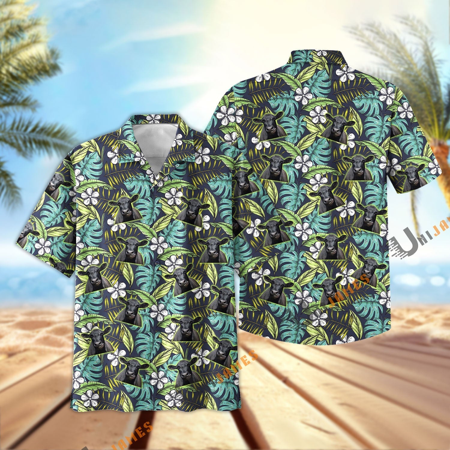 Uni Black Angus Summer Blue Flowers 3D Hawaiian Shirt